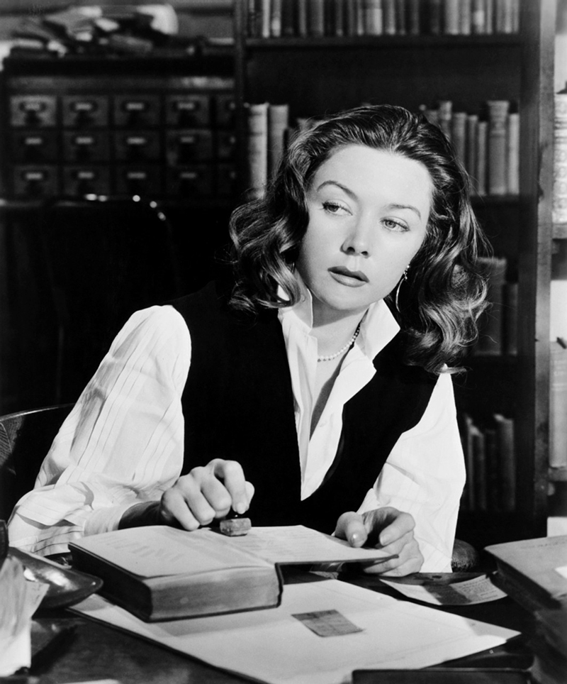 Sa première incursion à Dark City fut dans It’s a Wonderful life (La Vie est belle, 1946), première et unique incursion de Frank Capra, réalisateur optimiste s’il en est, dans les rues de la ville (ne serait-ce que pour un quart d’heure terrifié). Elle jouait Violet Bick, une fille gentille et sexy qui, dans la vision cauchemardesque révélée par l’ange à Jimmy Stewart, devient la sombre pute de Pottersville. Elle fit forte impression, pour le meilleur et pour le pire. Elle raffermit sa position – d’actrice et d’entraîneuse – grâce à une nomination aux Oscars pour Crossfire (Feux Croisés, 1947) : call-girl solitaire, elle est piégée dans une enquête sur un meurtre. Pour le réalisateur Edward Dmytryk, elle était « sacrément fêlée ». Pas de doute, il y avait de quoi devenir dingue quand on avait une formation de théâtre classique, un sens de l’humour acerbe, un esprit curieux et le désir d’incarner Lady Macbeth, mais qu’on se retrouvait enfermée dans des piaules aux papiers peints graisseux.