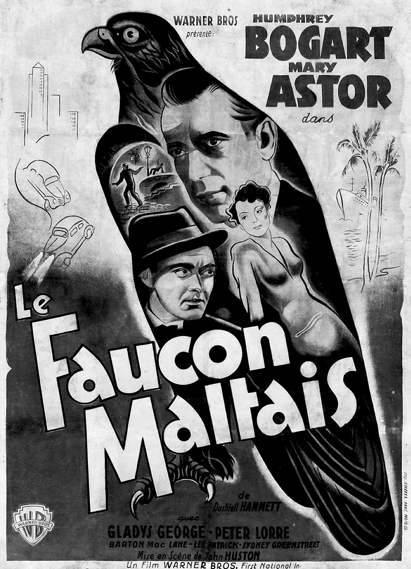Une caméra plane au-dessus de San Francisco sur un air de swing endiablé, puis le nom de l’agence des détectives privés, « Sam Spade and Miles Archer », s’affiche en grandes lettres. L’objectif s’attarde sur le héros : quelques secondes suffisent à nous entraîner dans un tourbillon de mensonge, de trahison et de meurtre. Nous y sommes en bonne compagnie puisque le héros est le détective privé le plus célèbre d’Hollywood, Sam Spade, interprété par l’idole du film de gangsters et de détectives Humphrey Bogart.