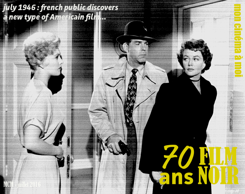 During summer 1946, the French public had the revelation of a new type of American film. In a few weeks, from mid-July to the end of August, five films succeed each others on the Parisian screens, which had in common an unusual and cruel atmosphere tinged with a quite strange eroticism : Le Faucon Maltais (The Maltese Falcon) from John Huston (July 31st), Laura from Otto Preminger (July 13th), Adieu ma belle (Murder, My Sweet) from Edward Dmytrick (July 31st), Assurance sur la mort (Double indemnity) from Billy Wilder (July 31st).