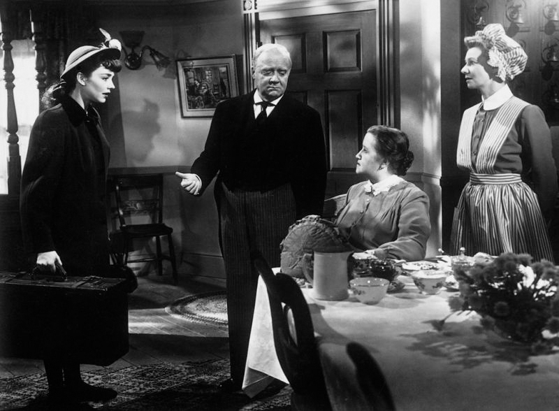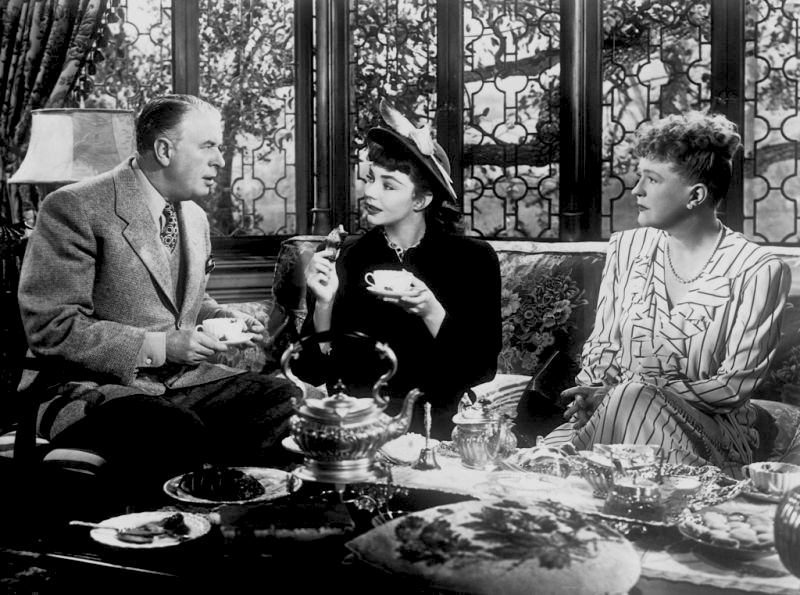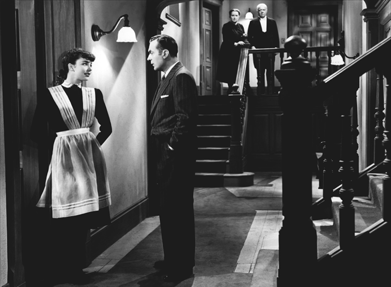 Ce qu’il dénonce à tous les niveaux, c’est l’aveuglement de ces êtres figés, imperméables à tout ce qui dépasse les limites de leur étroit regard au point de ne pas voir l’irruption du monde extérieur sous leur propre toit. Répréhensible dans l’ensemble puisque l’intrigue se situe en 1938 et que, comme le déclare Peter Lawford, « l’Europe danse sur un volcan », cet aveuglement prend des formes plus ou moins alarmantes. Lord et Lady Carmel, enfermés dans leurs rites, font figure de bienheureux innocents ; et leurs domestiques conformistes et xénophobes, auxquels manque la grâce de ceux d’Angel, de simples imbéciles. En revanche, la superficielle Betty Cream est nuisible et donc traitée plus durement – faut-il que le monde de Lubitsch ait changé pour que la frivolité y ressemble autant à la sottise ! Mais c’est encore la petite bourgeoisie qui mérite la critique la plus sévère, elle qui ne tient sa rigidité morale que d’une imitation servile des classes supérieures. Aussi la peinture de l’insupportable et pathétique Mr. Wilson (Richard Haydn) régnant dans sa pharmacie d’un autre âge fait elle grincer des dents plus que sourire ; elle donne même lieu à des moments d’une authentique amertume comme on en trouve rarement chez Lubitsch. Je pense à cette superbe scène où le pharmacien tape frénétiquement sur son harmonium ; près de lui Cluny tente de s’absorber dans une rêverie romantique gâtée par les ronflements de la vieille Mrs. Wilson, qui ne s’éveille que pour émettre les raclements de gorge dont elle a fait depuis longtemps son unique vocabulaire. Le cadre sait rendre plus étouffant encore ce décor pesant et vieillot d’intérieur provincial. Pour la violence du trait on pense à Flaubert, et Jennifer Jones, pour quelques fulgurants instants, n’est guère loin de son futur personnage de Mme Bovary dans le film de Minnelli…