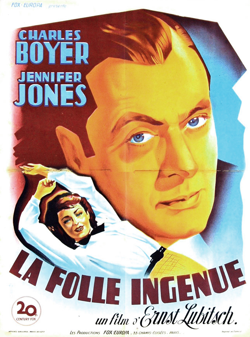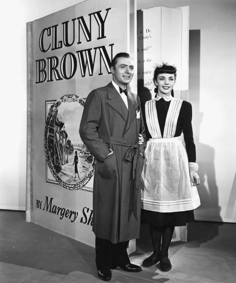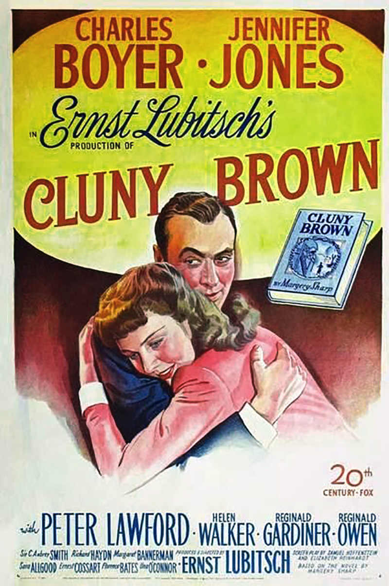 A la fin de l’année 1945, Lubitsch, qui avait rencontré de graves problèmes de santé, est autorisé par son médecin à reprendre son poste derrière la caméra. Cluny Brown (La Folle ingénue) est adapté d’un roman populaire à succès de Margery Sharp – source qui n’a rien de commun avec les pièces hongroises dont Lubitsch est friand. Ainsi, Heaven can wait (Le Ciel peut attendre, 1946) était trop testamentaire pour être vrai. Après la splendeur de Heaven, et ce qui y passait pour de touchants adieux, le plus modeste Cluny Brown prend une position d’outsider un peu gênante, et a rarement droit de cité parmi les « grands » Lubitsch. Apparemment déplacé, Cluny Brown a quelque chose d’un vilain petit canard qui attache et fascine d’autant plus le spectateur attentif.
