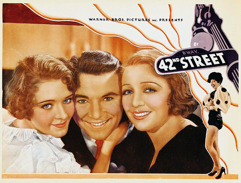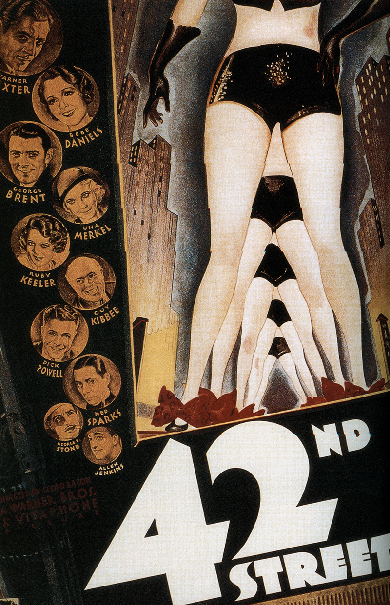 En dépit du décor et des vedettes, 42ème Rue est moins un film glamour déployant le charme ensorcelant qu’Hollywood sut conférer au genre du music-hall, qu’une œuvre âpre et sèche, où la troupe de Broadway devient le laboratoire de la Grande Dépression qui angoisse et humilie les citoyens américains de l’époque. Entre un metteur en scène dépressif, hanté par la banqueroute, une vedette qui se prostitue à un homme riche qu’elle n’aime pas, de crainte de partager sa vie avec un artiste dans la misère, des danseuses et chanteuses qui s’écroulent d’inanition et de fatigue, au rythme impitoyable d’un show qui évoque les marathons de danse filmés par Mervyn LeRoy dans Hard to Handle, 42ème Rue dresse le portrait d’une armée d’esclaves levant des jambes anonymes, au service d’un divertissement destiné à faire fugitivement oublier aux spectateurs que la misère, le chômage et la détresse les attendent, eux aussi, dans la rue, une fois le rideau tombé sur les splendeurs décoratives des fantaisies de Busby Berkeley