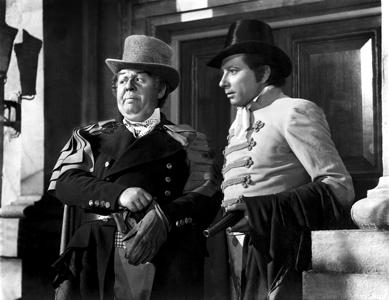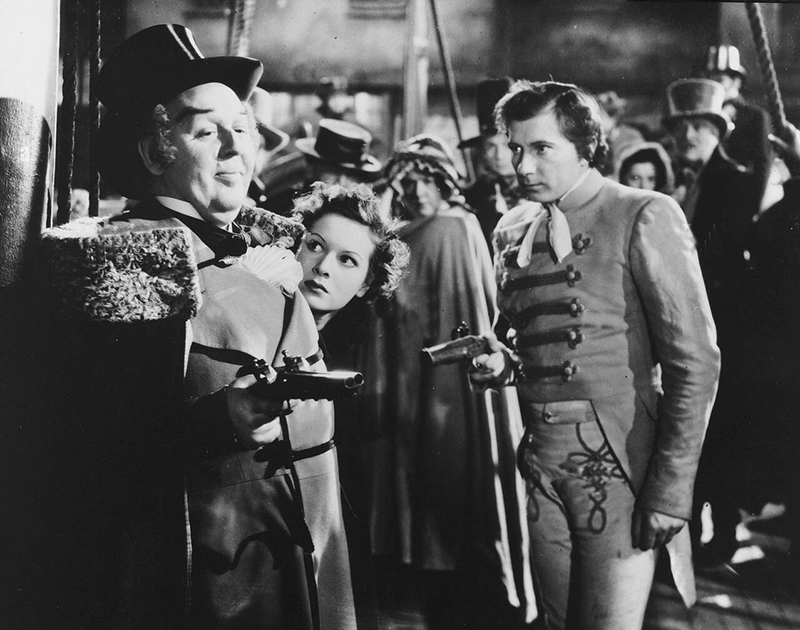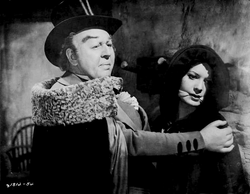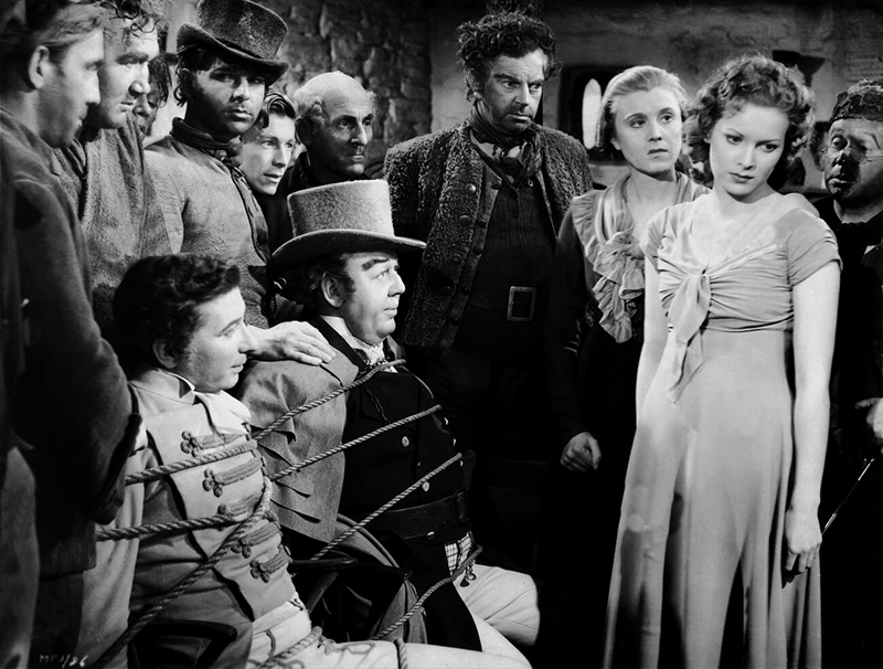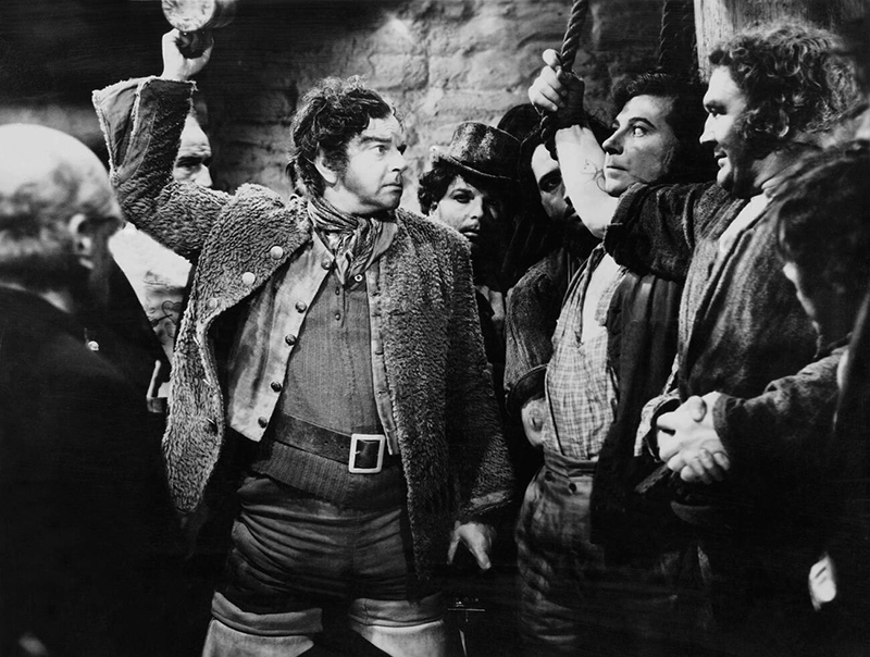 A.H. Laughton et Erich Pommer, associés. C’est comme vous le savez, un roman de Daphné du Maurier. Le premier scénario a été écrit par Clemence Dane, auteur de pièces réputé ; ensuite j’ai fait engager Sydney Gilliat et nous avons établi le script ensemble. Enfin Charles Laughton a voulu étoffer son rôle et il a amené J B. Priestley pour les dialogues additionnels. J’avais connu Erich Pommer en 1924 lorsque j’étais scénariste et décorateur en Allemagne pour The Blackguard, car il était associé dans cette production avec Michael Balcon et je ne l’avais jamais revu. Jamaica Inn était une entreprise totalement absurde. Si l’on examine « L’Auberge de la Jamaïque », par Daphné du Maurier, l’histoire racontée, on s’aperçoit qu’il s’agit d’un whodunit. A la fin du XVIIIe siècle, une jeune orpheline irlandaise, Mary (Maureen Q’Hara), débarque en Cornouailles pour y retrouver sa tante Patience dont le mari Joss tient une taverne sur la côte. Il se passe toutes sortes d’horreurs dans cette fameuse taverne qui abrite des pilleurs d’épaves, des naufrageurs. Ces gens bénéficient d’une impunité totale et ils sont même informés régulièrement des passages de navires dans la région. Pourquoi ? Parce que, à la tête de tout ce brigandage, se trouve un homme respectable qui tire les ficelles, et cet homme n’est autre que le juge de paix. Voilà pourquoi ce film était une entreprise irraisonnée ; le juge de paix ne devait normalement apparaître qu’à la fin de l’aventure car, très prudemment, il se tenait à l’écart de tout et il n’avait aucune raison de se montrer dans la taverne. C’était donc absurde de tourner ce film avec Charles Laughton dans le rôle du juge et, lorsque je mien suis aperçu, j’ai été réellement désespéré. Finalement j’ai tourné le film mais je n’en ai jamais été content malgré le succès commercial inespéré.