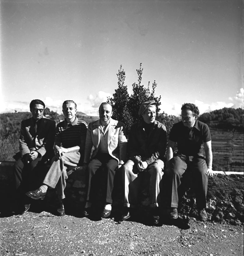 Joseph Kosma, Jacques Prévert Marcel Carné, Jean Gabin et Alexandre Trauner à la Colombe d’Or à Saint-Paul-de-Vence, en 1945 (Photo Emile Savitry)