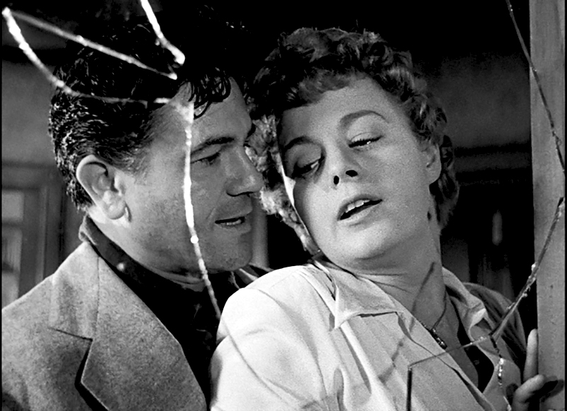 Cette fin n’aurait jamais le même impact sans la mise à mort de Garfield, imprévisible pour le spectateur, et sans doute guère calculée par Shelley Winters. L’actrice la joue en tout cas avec un opportunisme formidable, comme si ce coup de feu tiré à bout portant relevait de la folie d’un instant, impossible une seconde auparavant, devenant insoutenable une fois commis. La gestuelle de la comédienne en arrière-plan, certes debout, mais décomposée, un corps sans os prêt à s’affaler, horrifiée par le sort de Garfield et par son propre acte, reste un moment inoubliable. Shelley Winters le décrit avec justesse dans ses souvenirs. « James Wong Howe pensait qu’il y avait trop de lumière cette nuit-là et qu’il faudrait tourner le lendemain, cela signifiait que le budget du film, déjà largement dépassé, serait encore plus lourd. J’ai décidé que ce serait maintenant ou jamais. Je me suis emparée du faux pistolet pour tirer sur Garfield. Il m’a regardée incrédule et désespéré, un regard qui n’a cessé de me hanter, et il a dévalé les escaliers. Il était ‘mort’. J’ai commencé à crier comme une folle. Une doublure était censée tomber de ces escaliers. Je croyais que John était mort pour de bon. Et d’une certaine manière, il l’était. » [Le Dernier film noir – Samuel Blumenfeld – Ed. Wild Side Video (2010)]