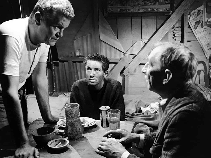Parce que les amants en cavale sont encore des adolescents, l’ironie désespérée de They Live by Night est encore accentuée par la jeunesse et l’innocence mêmes de ces deux « hors-la-loi ». Comme l’explique un intertitre : « Ce garçon et cette fille n’ont jamais été correctement initiés au monde dans lequel nous vivons. Pour raconter leur histoire, Ils vivent la nuit. » Comme le montre aussi un bref prologue Bowie et Keechie ne sont pas des voleurs comme les autres. Bowie est en réalité trop naïf pour survivre. Non seulement parce qu’il n’est qu’un « gamin » (le surnom que lui donne la presse pour pimenter le récit de sa cavale) qui se prend pour un homme, mais également parce que sa naïveté permet à de vrais brigands comme T-Dub (Jay C. Flippen) et Chickamaw (Howard Da Silva) de profiter de lui. Sinon, comment l’auraient-ils persuadé que la seule façon de se disculper d’une accusation de meurtre est de prendre un avocat, et que la seule façon de pouvoir se payer un avocat est d’aider ses amis à cambrioler une banque ?