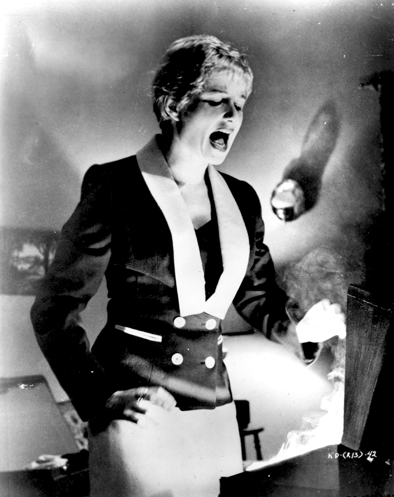 La tragédie commence à prendre forme, comme nous avons pu le pressentir : jusqu’ici nous n’avons rencontré que des gens terrorisés – manifestement victimes d’une technologie obscure qui leur a laissé des brûlures sur la peau -, des accidents mystérieux et mortels, des tueurs sans scrupule et une police tout aussi démunie que Hammer dans sa recherche du matériau fatal. L’affaire se corse lorsque la troisième femme, Lily – son vrai nom est Gabrielle et elle est l’assistante du docteur Soberin (Albert Dekker), celui qui tire toutes les ficelles – profite des recherches du détective privé qui ne se doute de rien pour entrer en possession de la mallette. Restent un détective déconfit et des criminels détenant du minerai radioactif. Mais à la fin, la curieuse Gabrielle ne peut résister à l’envie de découvrir ce qui se cache dans la mallette ; en ouvrant la « boite de Pandore », elle déclenche une explosion atomique. Dans une scène apocalyptique, Mike Hammer et Velda parviennent à s’enfuir vers la plage et retournent finalement à la mer, source de toute vie.