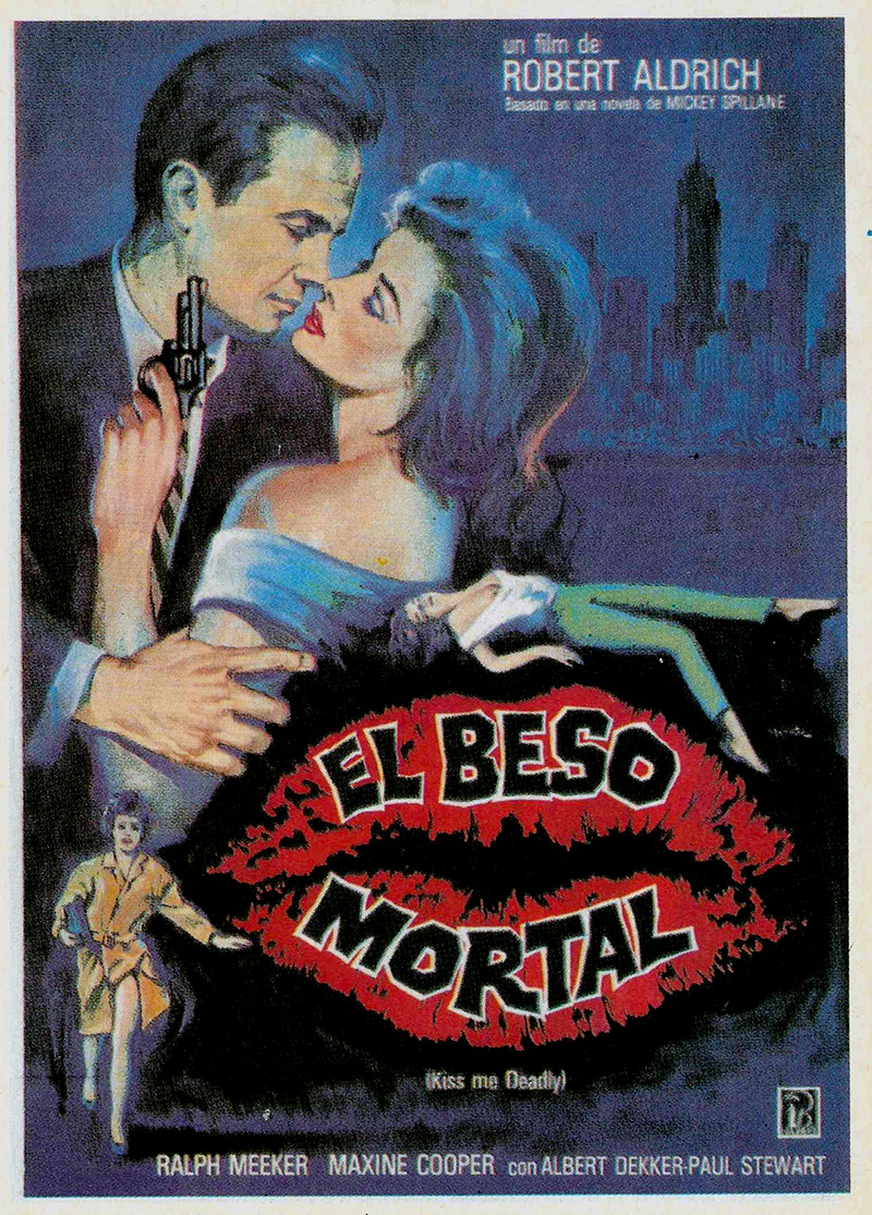 Adapté d’un roman de Mickey Spillane, Kiss Me Deadly réussit tout à la fois à être a priori fidèle à l’œuvre originale et en réalité encore plus proche de l’univers de Robert Aldrich qui aidé de son scénariste Bezzerides, a apporté au roman de Spillane une surprenante seconde dimension. Certes, la violence inhérente à la production littéraire de Spillane, la personnalité de Mike Hammer, son héros d’élection, les comparses habituels (Velda, la fidèle secrétaire, Pat, l’ami policier) et la galerie inévitable de filles et de tueurs sont au rendez-vous mais Bezzerides et Aldrich, en remplaçant le trafic initial par le péril atomique, ont contribué à faire exploser l’intrigue elle-même. Aldrich et Bezzerides n’ont jamais caché le peu d’estime qu’ils portaient à Spillane et à son roman. « À vrai dire, déclarait Aldrich à François Truffaut, je regrette d’avoir accepté Kiss Me Deadly. Il y avait déjà eu deux films exécrables de la même série d’après le même auteur et j’aurais dû refuser. Mickey Spiliane est un esprit antidémocratique… fasciste.» Il ajoutait quelques années plus tard : « Le livre n’était rien. Nous avons juste gardé le titre et jeté le reste. Le scénariste, A.l. Bezzerides, a fait un travail remarquable et a énormément contribué à l’invention du film. La boîte diabolique, par exemple – une référence évidente à la bombe atomique – était principalement son idée. »