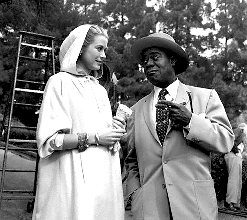 On set – HIGH SOCIETY – Charles Walters (1956) – Grace Kelly, Louis Armstrong