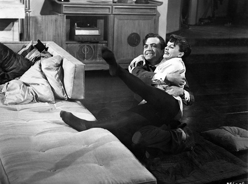 Avec son titre repris régulièrement par la presse pour saluer l’avènement de la moindre vedette, A Star is born (Une Etoile est née) fait assurément partie des films les plus importants de l’histoire du cinéma américain. Il fut pourtant boudé à sa sortie, souffrant avant tout d’un montage tronqué par les exécutifs de la Warner, qui voulaient réduire la dimension psychologique du film et y injecter plus de grand spectacle (la version que nous connaissons aujourd’hui a rétabli, tant bien que mal, ces passages, dont on peut imaginer à quel point ils manquaient à l’époque). Mais peut-être le sujet du film lui-même a-t-il rebuté les spectateurs, tant il jette sur les coulisses de l’usine à rêves un éclairage peu reluisant… Et pourtant, ce regard introspectif sur Hollywood compte parmi les grandes qualités du film. Des qualités auxquelles il faut ajouter les chansons d’Harold Arlen et Ira Gershwin, et la mise en scène tout en subtilité de George Cukor (le long plan-séquence qui voit l’héroïne chanter dans le cabaret obscur en est un magnifique exemple). Mais le plus impressionnant dans A Star is born , c’est évidemment la performance de Judy Garland et de James Mason, qui seront étonnamment oubliés par les Oscars, mais recevront tout de même un Golden Globe.