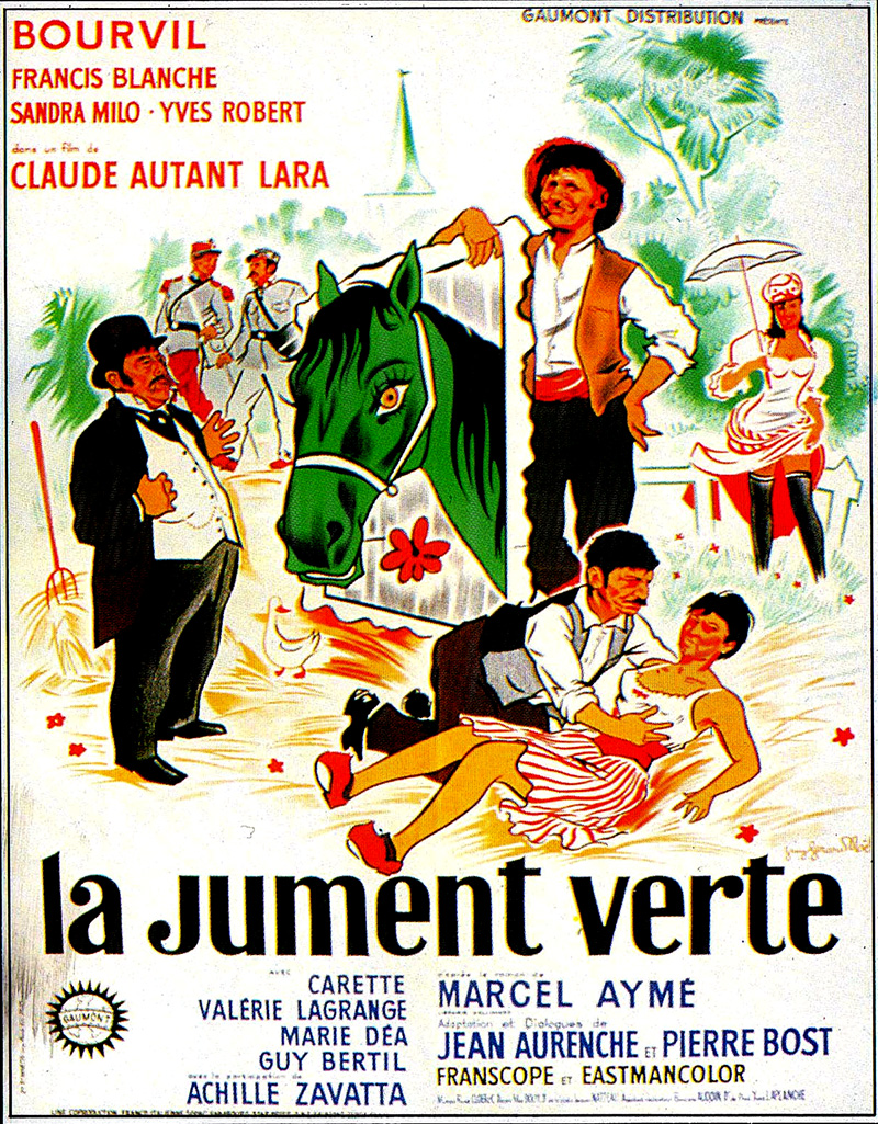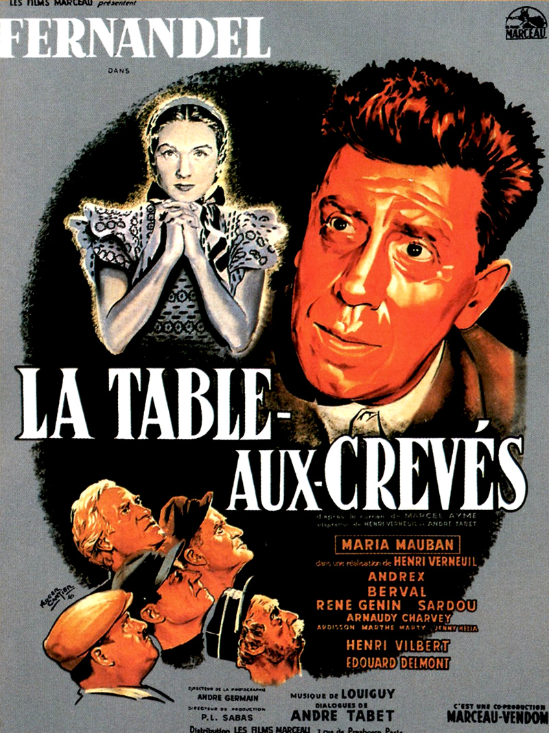 Mais si Marcel Aymé s’est moins intéressé au cinéma au lendemain de la guerre, le cinéma s’est en revanche beaucoup intéressé à lui. En 1951, Jean Boyer lance la mode des adaptations de l’écrivain avec Le Passe-muraille, fable fantastique interprétée par Bourvil (huit ans plus tard, le cinéaste Ladislao Vajda en donnera une version allemande). Suivront La belle image, La Table aux crevés (avec Fernandel), La Traversée de Paris ou encore Le Chemin des écoliers, dans lequel se côtoient Bourvil, Françoise Arnoul, Lino Ventura et Alain Delon. Mais le film le plus retentissant de l’époque sera celui que Claude Autant-Lara tire en 1959 de La Jument verte – le comité de censure décidant même de l’interdire aux moins de 18 ans… Un an après la mort de l’écrivain, survenue en 1967, la télévision diffusera un feuilleton inspiré des Contes du chat perché, et des cinéastes aussi divers que Georges Wilson (La Vouivre) ou Claude Berri (Uranus) continueront encore à puiser dans son œuvre si prolifique.