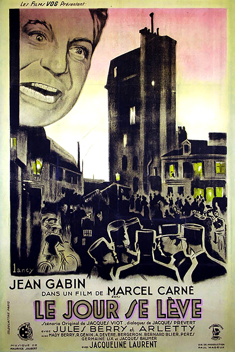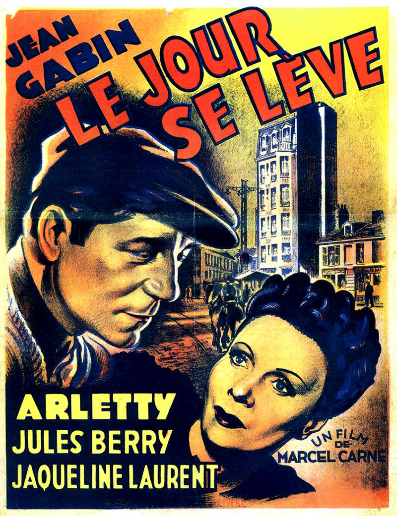 Alors qu’il gravit péniblement I’échelle conduisant à sa chambre d’hôtel du cinquième étage où il est assiégé par la police, Gabin lance à la volée : « Quand vous aurez fini vos petites « conneries », vous me le direz ! » Et ce n’était pas du Prévert ! Alors Carné calme le jeu, fait installer un praticable et retrouve l’atmosphère des bons jours. Dans cette dramatique histoire après l’assaut de l’hôtel, une fois encore le personnage de Gabin finit de mort violente, lorsque le jour se lève. Après avoir mortellement blessé Valentin (Jules Berry), François (Gabin) se barricade dans sa chambre d’hôtel, échange des coups de feu avec la police. Et il se souvient : ouvrier sableur d’une fonderie, il a rencontré Françoise (jacqueline Laurent), une jeune fleuriste sous la coupe de Valentin, dresseur de chiens peu scrupuleux dont la maîtresse Clara (Arletty) s’éprend à son tour de François, lequel a éliminé son odieux rival. [Jean Gabin inconnu – Jean-Jacques Jelot-Bkanc – Ed. Flammarion (2014)]
