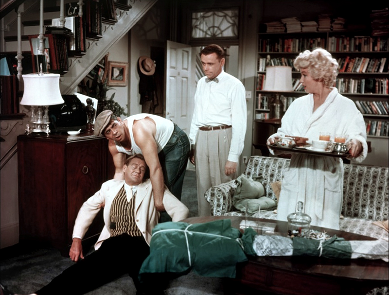 Dans The Major and the Minor (Uniformes et jupon court) l’on voit Susan Applegate user du déguisement pour s’assurer de l’amour du major. Ce n’est qu’un jeu, mais déjà Billy Wilder emprunte la voie d’un thème qu’il reprendra souvent et qui éclaire toute son œuvre. Si Richard Sherman ne se déguise pas physiquement, il se déguise socialement, moralement et n’y gagne d’ailleurs qu’un perpétuel conflit intérieur. Il est bon pour le divan… du psychanalyste, et n’échappe à celui-ci que parce que le film se charge lui-même, à sa façon bien sûr délirante, de cette « psychanalyse ». Entendons par là que, dans un pays où les émules de Freud font recette (ici le Dr Brubaker et ses 50 dollars de l’heure), Wilder ne les considère implicitement que comme des pis-aller, laissant à son film le soin de nous dire comment l’on pourrait, dans l’idéal, se passer fort bien d’eux. Sans illusion bien sûr, mais si tout n’est qu’affaire d’inconscient tout dépend donc de la nature de cet inconscient. A sa modeste façon le film nous propose un petit morceau d’inconscient de rechange.