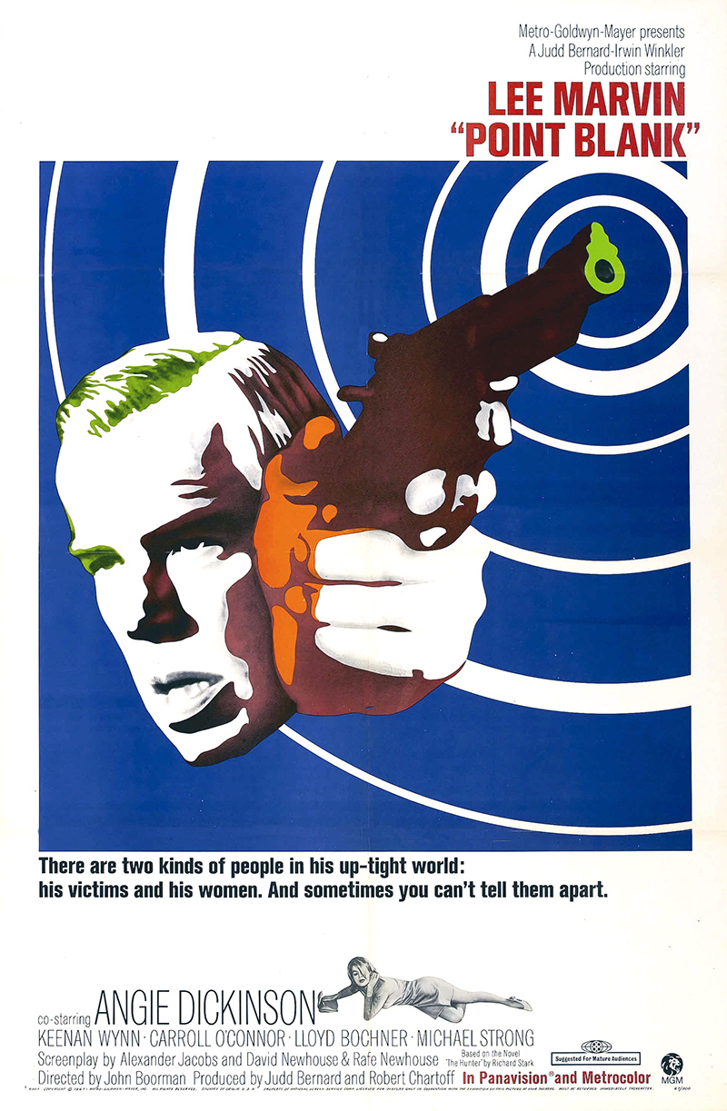 Deuxième film de John Boorman (Excalibur, Deliverance), Point Blank frappe encore aujourd’hui par son audace et ses trouvailles visuelles : narration déconstruite, images monochromes, scènes d’une violence inouïe… Au casting de cette oeuvre fondamentales et atypique, Lee Marvin incarne Walker, véritable anti-héros obstiné et sans remords, aidé dans sa quête de vengeance par sa belle-soeur (Angie Dickinson) et l’ambiguë Yost (keenan Wynn).