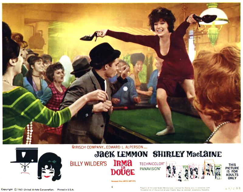Un ratage, selon Wilder, mais le public en fit un de ses plus gros succès. Shirley MacLaine joue avec autorité l’archétypale prostituée au grand cœur. Lemmon s’attaque hardiment au double rôle de Nestor, l’agent de police français qui travaille dans le quartier chaud tout en se faisant passer pour « Lord X », client d’Irma. Le film est paillard et pittoresque, plein de surprises, plus charmant et sexy que le réalisateur ne veut bien l’admettre. Sa déception est peut-être due à une infraction à son propre code : ne faites jamais parler des personnages étrangers dans un pays étranger avec l’accent américain. Note : Brigitte Bardot supplia qu’on lui confie le rôle d’Irma. Wilder tint à garder MacLaine, qui a rarement été aussi attirante. « Ça aurait dû rester une pièce » commente Wilder dédaigneusement. On ne le fera pas changer d’avis.