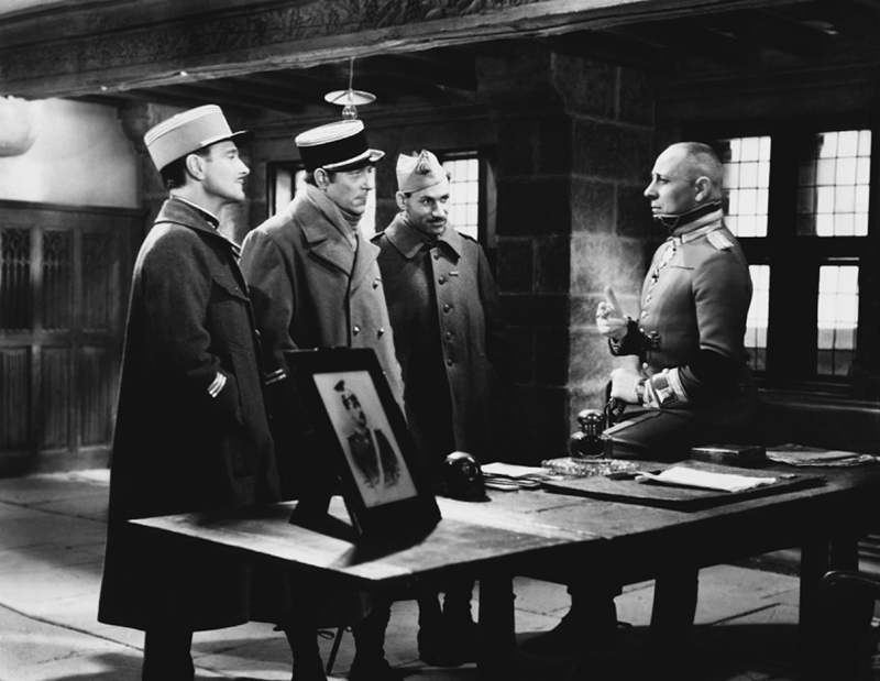 Peu avant le tournage, Raymond Blondy (chargé de production) rencontre en effet un obscur acteur autrichien qui vient de tourner avec Edwige Feuillère : il lui offre alors le rôle, très secondaire, de l’officier responsable du camp. Quelle n’est donc pas la surprise de Renoir en apprenant qu’il s’agit en fait d’Erich von Stroheim, cinéaste dont le génie dépasse à ses yeux celui de Chaplin et de Griffith, et dont le film Les Rapaces a tout simplement décidé de sa vocation ! Renoir s’apprête donc à se confondre en excuses pour avoir osé proposer à son idole de jouer un personnage n’apparaissant que dans une courte scène. Mais lorsqu’il rencontre son maître, la tentation est trop forte : il assure à Stroheim que son rôle sera merveilleux, et s’empresse ensuite de modifier le script pour faire de Rauffenstein l’un des principaux protagonistes du film. Ce dont Gabin ne prend heureusement pas ombrage, bien que son rôle s’en trouve évidemment diminué. Et il ne s’offusquera pas non plus de l’attitude de Stroheim qui, retrouvant ses réflexes de cinéaste, a tendance à composer lui-même son personnage. Un comportement qui provoque parfois des heurts avec Renoir, mais ce dernier saura aussi intégrer certaines idées de son aîné, comme celle de la minerve, qui renforce indubitablement l’impact du personnage de Rauffenstein…