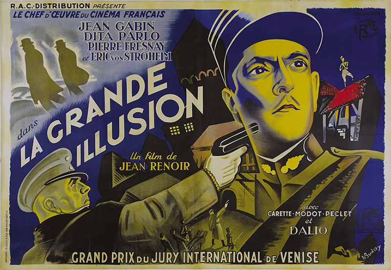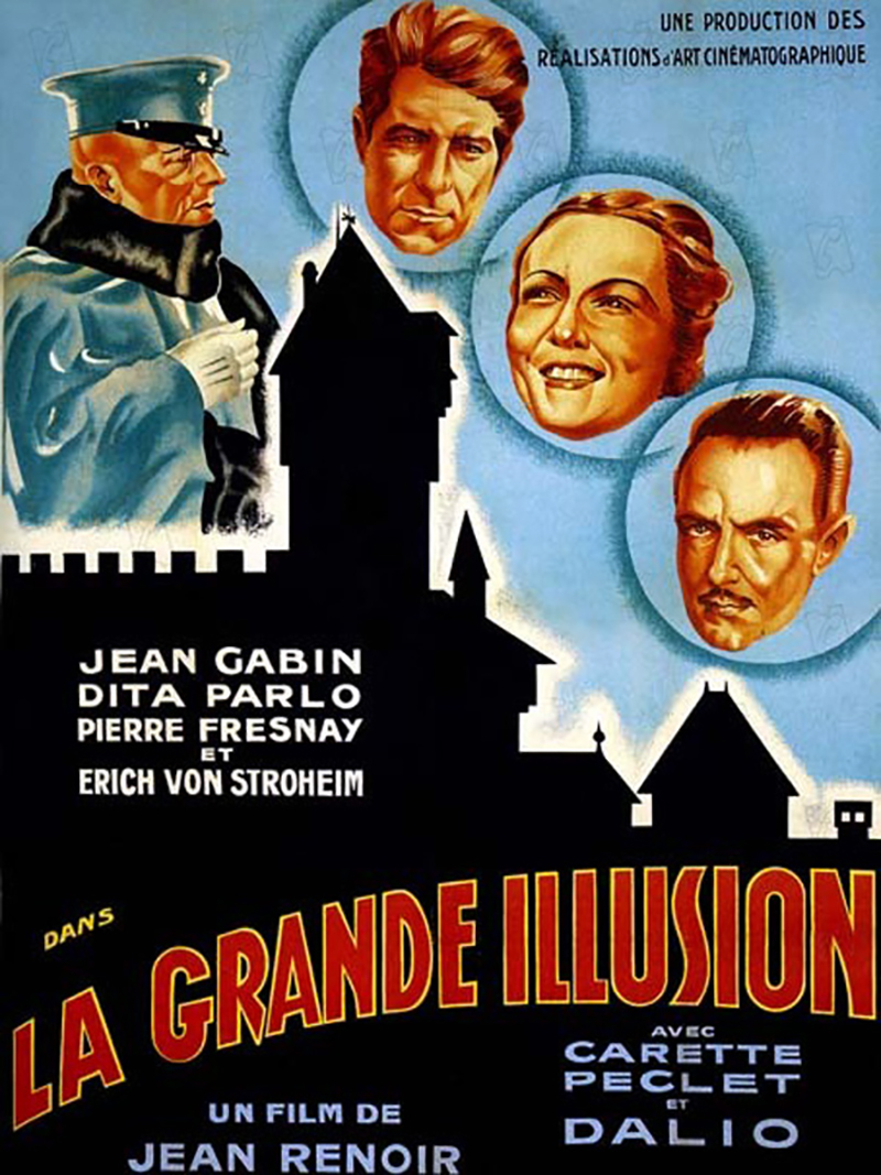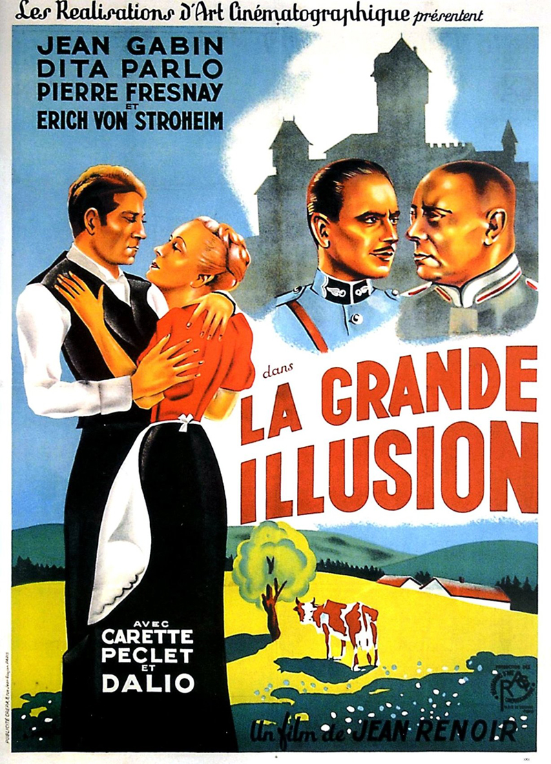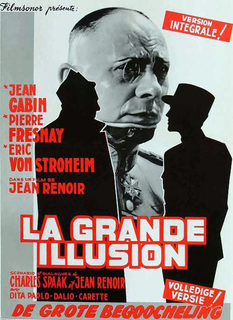 La Grande Illusion, est le moins contesté de tous les films de Renoir, est construit sur l’idée que le monde se divise horizontalement, par affinités, et non verticalement, par frontières. Si la deuxième Guerre mondiale et surtout le phénomène concentrationnaire semblent avoir infirmé le propos exaltant de Renoir, les actuelles tentatives « européennes », montrent que la force de cette idée était en avance sur l’esprit de Munich. Mais La Grande Illusion est tout de même un film d’époque au même titre que La Marseillaise, car on y pratique une guerre empreinte de fairplay, une guerre sans bombe atomique et sans tortures.