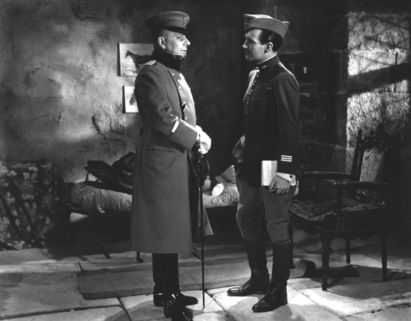 « Dans La Grande illusion, j’étais encore très, préoccupé de réalisme. Je suis allé jusqu’à demander à Gabin de porter ma propre tunique d’aviateur que j’avais gardée après avoir été démobilisé. En même temps, je n’hésitais pas à renforcer certains points de manière fantaisiste afin d’en augmenter l’effet, par exemple, l’uniforme de Stroheim », C’est par ces mots que, dans son ouvrage Ma vie et mes films, Jean Renoir évoque le parti pris de mise en scène adopté pour le tournage de son vingt-et-unième film. Un parti pris déjà mis au point dans certaines de ses précédentes réalisations, mais qui cette fois semble découler aussi de la personnalité de ses acteurs, et en particulier de deux d’entre eux. Car on ne peut imaginer tempéraments plus opposés que ceux de Jean Gabin et d’Erich von Stroheim. Autant le premier est un adepte de la simplicité et du « parler vrai » (à l’écran comme à la ville), autant son partenaire autrichien donne à ses rôles une sophistication et un panache des plus spectaculaires. Un registre qui reste d’ailleurs le sien en dehors des plateaux, ce qui fera dire à Gabin que Stroheim, tout « génie du septième art » qu’il soit, en fait tout de même un peu trop… Mais ce fort contraste fait justement partie des grandes qualités de La Grande illusion, œuvre qui évoque l’incompatibilité profonde du monde populaire et de l’aristocratie, cette dernière connaissant d’ailleurs son chant du cygne au cours de la Grande Guerre.