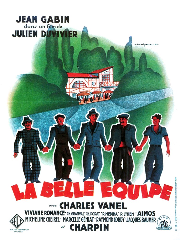 Ouvriers, paysans, petits employés n’ont jamais intéressé le cinéma au même titre. Les paysans sont les éternels oubliés parce que (…) les zones rurales ne permettent pas de bonnes recettes. Et puis, pensent les producteurs et bien des auteurs, en dehors des heures de travail, le Français moyen ne veut-il pas avant tout se changer les idées ? Voir Fred Astaire danser dans un palace, n’est-ce pas plus distrayant que retrouver « la chaîne » ? Il serait cependant faux de croire que le peuple n’apparaît jamais au cinéma. Quels films ? Quel peuple ? Tourné pendant le bel été 36, sorti à la mi-septembre, La Belle équipe de Julien Duvivier et Charles Spaak (co-scénariste, dialoguiste) est peut-être le film le plus inspiré par l’esprit des événements, sans qu’on puisse cependant lui accoler l’étiquette « politique ».
