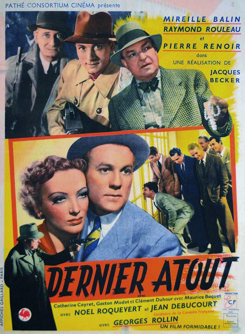Aujourd’hui, quand on revoit Dernier Atout, ce sont encore ces qualités qui frappent toujours. Après ce brillant début, Becker récidiva tout de suite après, avec Goupi-mains-rouges (1942), film paysan où il s’affirmait fidèle disciple de Renoir, par un souci de réalisme et de vérité des personnages, peu courant dans le cinéma d’alors. De Renoir aussi venaient certains éclats inattendus, certaines ruptures de ton, comme l’extraordinaire numéro de Le Vigan (dont ce fut le dernier grand rôle) en Goupi-Tonkin, ancien colonial alcoolique, au cerveau fêlé. Le film fut un des grands succès de l’année 1943-1944 et reste un des titres célèbres de la période. Un peu vieilli dans certaines de ses parties il reste excellent dans l’ensemble, surtout grâce à une galerie de figures, ayant toutes un relief extraordinaire. On y trouve déjà cet amour des personnages qui, de son propre aveu, fut une des marques caractéristiques du talent de Becker.