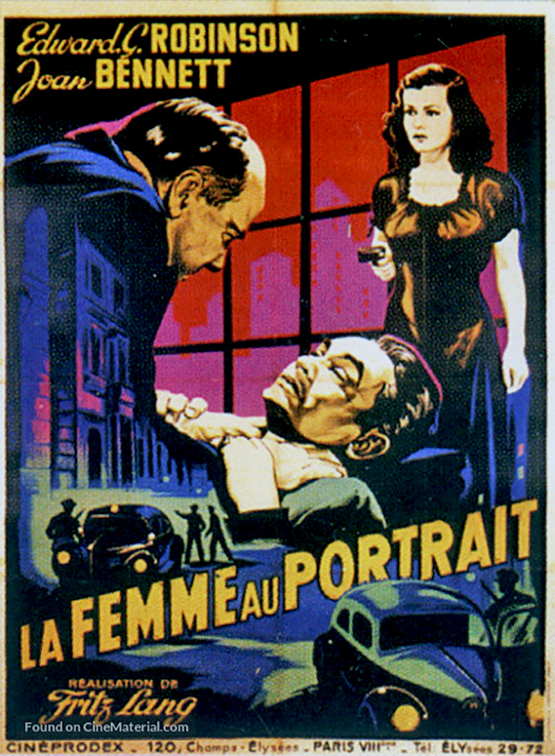 L’histoire : Le professeur Richard Wanley (Edward G. Robinson), un intellectuel sur le retour, envoie sa famille en vacances puis se rend à son club pour boire un verre. En arrivant, il raconte à ses amis qu’il a remarqué le tableau d’une très belle jeune femme exposé dans la vitrine d’une galerie d’art. On se moque de lui, avec des allusions scabreuses « aux folles nuits des célibataires ». En revenant chez lui, il s’arrête pour regarder à nouveau le portrait et sursaute soudain : le reflet du modèle se profile dans la vitrine. Il invite la jeune femme, Alice Reed (Joan Bennett), à boire un verre, et la raccompagne chez elle. Tandis qu’ils sont en train de bavarder en toute innocence, le petit ami d’Alice, Claude Mazard (Arthur Loft) fait irruption, fou de jalousie, et se bat avec Wanley. Ce dernier a du mal à se défendre, mais Alice lui tend une paire de ciseaux et tue l’homme. Alice et le professeur, paniqués, mettent au point un plan pour se débarrasser du corps. Wanley va chercher sa voiture, et après plusieurs incidents réussit à cacher le cadavre dans les bois mais il déchire sa veste, se blesse à la main et touche du sumac vénéneux. Wanley imagine être hors de danger, mais on finit par retrouver le corps.