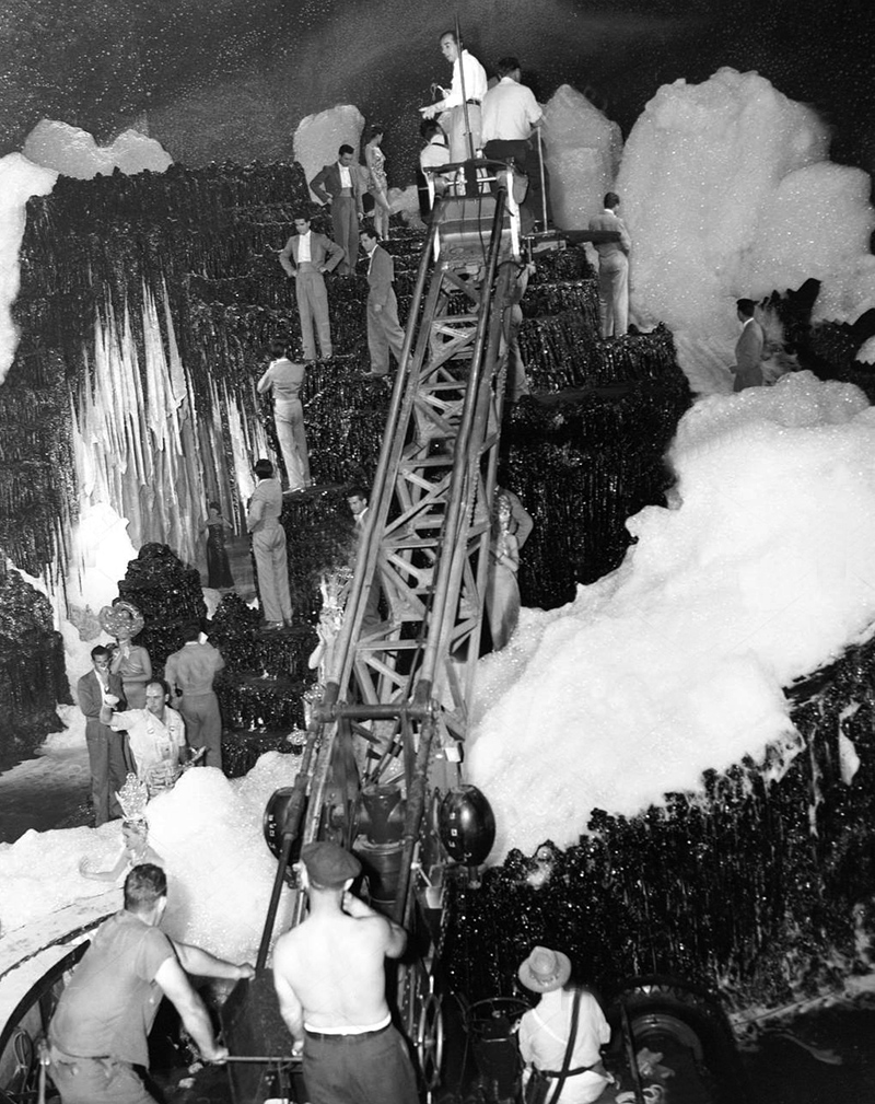« Le décor de ce numéro, raconte Fred Astaire, était un imposant ensemble de rochers et nous devions danser plongés jusqu’à la ceinture et en habit de soirée dans un véritable bain de mousse. De jolies filles étaient disséminées ici et là sur des rochers, semblables à de grandes mouettes. Plusieurs s’évanouirent, incommodées par les émanations des produits chimiques nécessaires à la fabrication de la mousse. Tout cela ne donna sans doute rien, la plus grande partie du numéro ayant sauté au montage final. Grâce au ciel, tout ce que j’y faisais avait disparu. C’était un véritable gâchis.» Restent un ensemble de rochers et de nuages, des girls ressemblant à des vestales et un décor qui rappelle certaines œuvres de Dali ou de Chirico. Cyd Charisse évolue au milieu de grandes masses de mousse, donnant une petite idée de ce que pouvait être à l’origine le numéro…