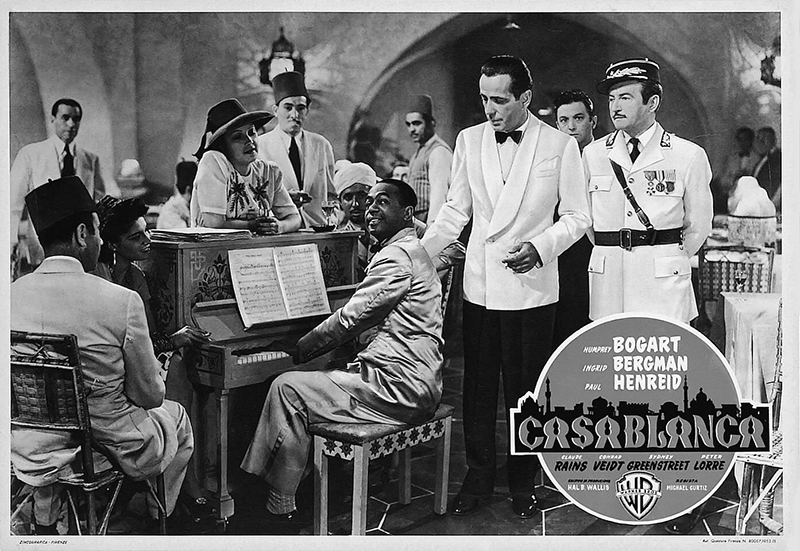 Humphrey Bogart Ingrid Bergman Paul Henreid et Claude Rains dans CASABLANCA de Michael Curtiz (1942). Production : Warner Bros.