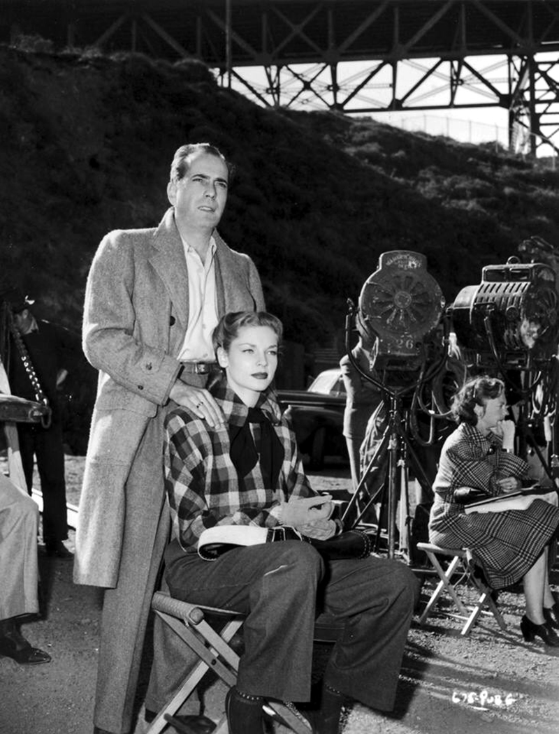 ON SET – Lauren Bacall et Humphrey Bogart dans DARK PASSAGE (Les passagers de la nuit) réalisé par Delmer Daves (1947)