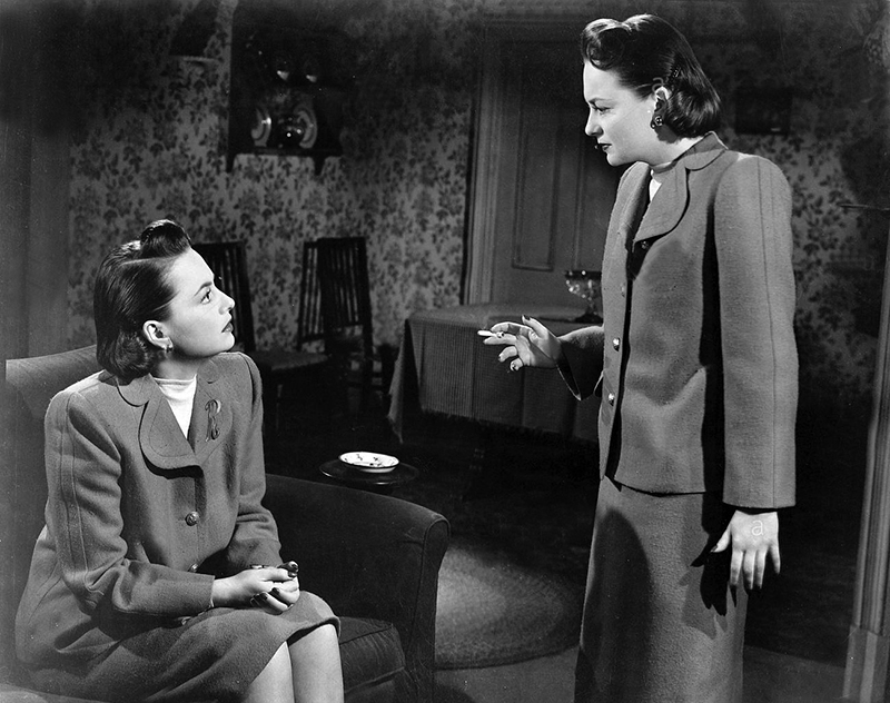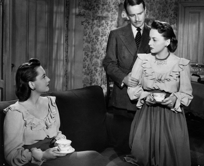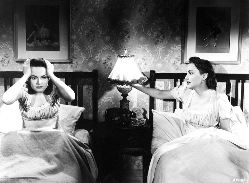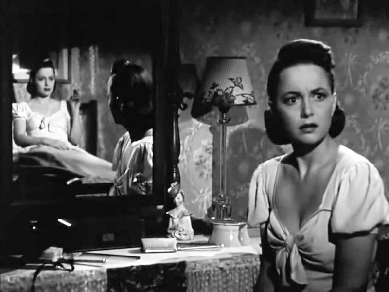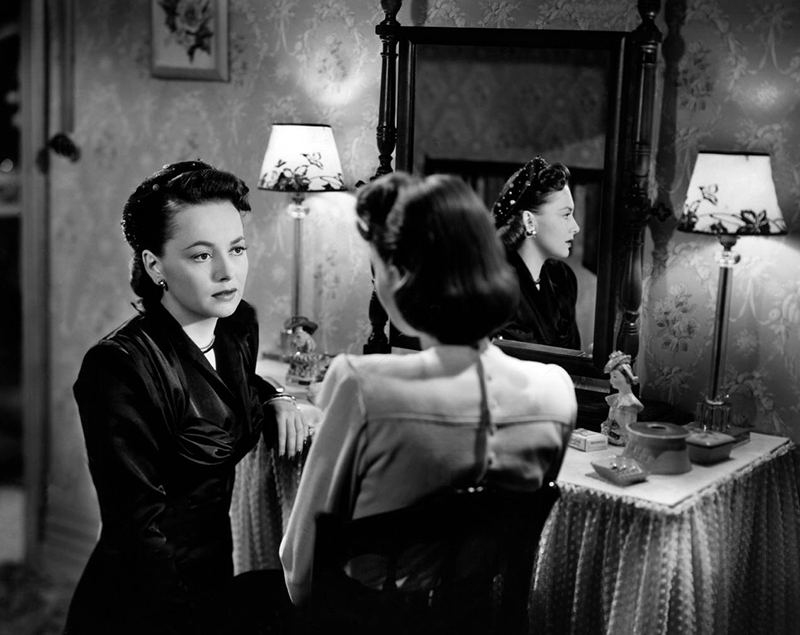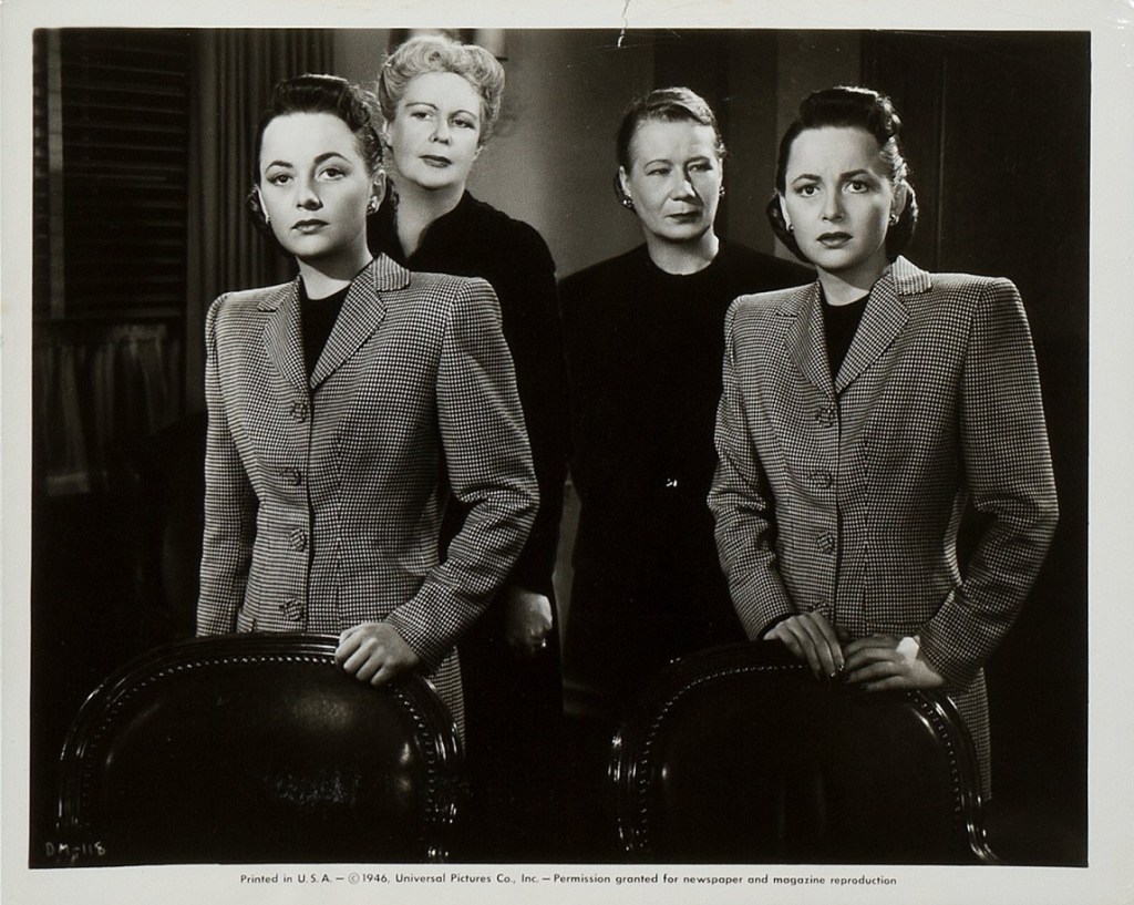 L’apparition simultanée du personnage de Terry et de celui de Ruth dans plusieurs plans a obligé Siodmak à utiliser soit une doublure, soit le système classique du cache. Mais, à l’opposé du grand mouvement de caméra qui va cadrer le cadavre de Peralta sur le sol, un poignard dans le dos, après avoir saisi New York, une fenêtre, un rideau, un réveil, une lampe renversée puis un canapé, la photographie cherche surtout à cerner les personnages, les uns par rapport aux autres, et surtout Teresa par rapport à Ruth. Siodmak se plaît à augmenter encore le thème de la gémellité et de la ressemblance en utilisant à plusieurs reprises des miroirs, ce qui laisse le spectateur dans la même incapacité que la police à découvrir qui est qui… À la fin, se sentant découverte, Teresa brisera un miroir, symbole de cette dualité complice, désormais rompue. Les deux sœurs se sont séparées. L’une ira en prison purger sa peine, l’autre épousera ce docteur Elliott dont elles étaient toutes deux amoureuses. On notera que, curieusement, Olivia de Havilland, choisie pour interpréter ce double rôle, était la sœur – aînée – de Joan Fontaine, et que l’antagonisme qui opposait parfois les deux sœurs ravissait les amateurs de potins hollywoodiens… [Le film noir – Patrick Brion – Editions de la La Martinière (2004)]
