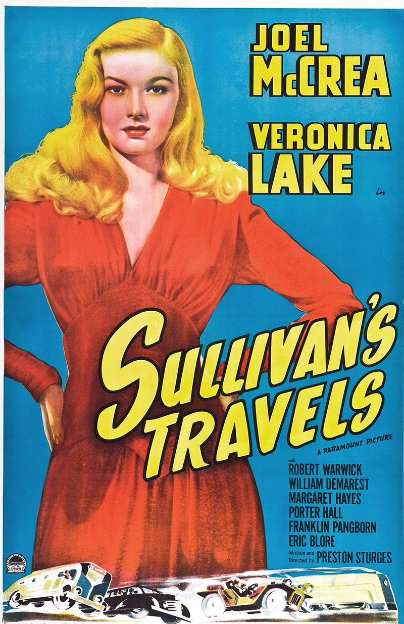 A travers Sullivan’s Travels (Les Voyages de Sullivan, 1942), avec Joel McCrea et Veronica Lake, Sturges expose avec virtuosité ses propres conceptions du cinéma. Les mésaventures de ce cinéaste hollywoodien qui se mêle incognito aux clochards afin de donner un cachet d’authenticité à son prochain film (et qui se trouve pris au piège de cet univers différent) lui permettent de jouer brillamment sur les ruptures de ton. Le drame fait irruption dans la comédie et les ironies du destin modifient les ambitions du héros, qui découvre que le rire est la chose la plus nécessaire aux déshérités. Une œuvre étonnamment moderne, où le rire recouvre une profonde amertume.