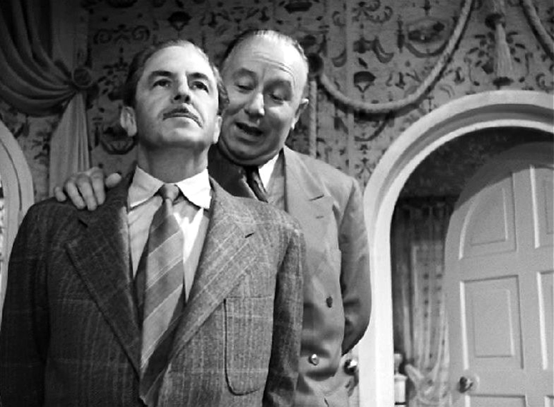 Au total, c’est cependant Seigner, l’optimiste, qui prend le dessus, à la fois aux yeux du spectateur (le personnage, débonnaire, est plus sympathique que son collègue hystérique) et dans son travail : il dénigre toutes les propositions de son compère – qui ne lui oppose du reste guère de résistance – et il impose finalement son point de vue. Le début du film est justement d’une intéressante ambiguïté : on croit d’abord à une attaque contre la censure qui vient de rejeter leur travail (« Nous n’avons plus qu’une liberté, celle de lutter pour la libération de la liberté, se désole Crémieux »). Mais rapidement il apparait que cette censure est venue pallier l’absence d’auto-censure d’un mauvais auteur qui se vautre dans le pire sensationnalisme (le scénario en question faisait intervenir une prostituée « qui fait des miracles sans quitter le trottoir », un archevêque et une petite fille, etc.). Son absence de discernement est du reste à nouveau stigmatisée lorsqu’il décrète comme lamentables sujets de films des faits divers lus dans le journal, et en lesquels on reconnaît l’histoire du Voleur de bicyclette et celle du Petit Monde de Don Camillo ! [Julien Duvivier « Le mal aimant du cinéma français » Vol 2 : 1940 – 1967 – Eric Bonnefille – Edition L’Harmattan – 2002]