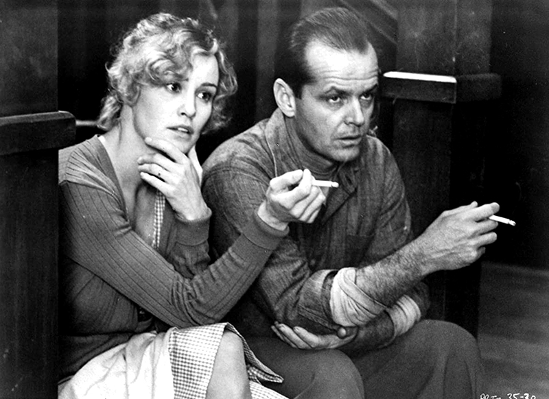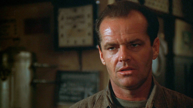 Jack Nicholson enserre le personnage de Frank dans les rais de son jeu spécifique. Plus vieux que dans le roman, sa vie semble déjà chargée d’un lourd passé. Rafelson en fait un professionnel du jeu, qui ne saura pas résister à cette autre passion lors de leur première fugue. Il misera l’argent des billets de train qui devaient leur permettre de fuir devant une Cora affligée.