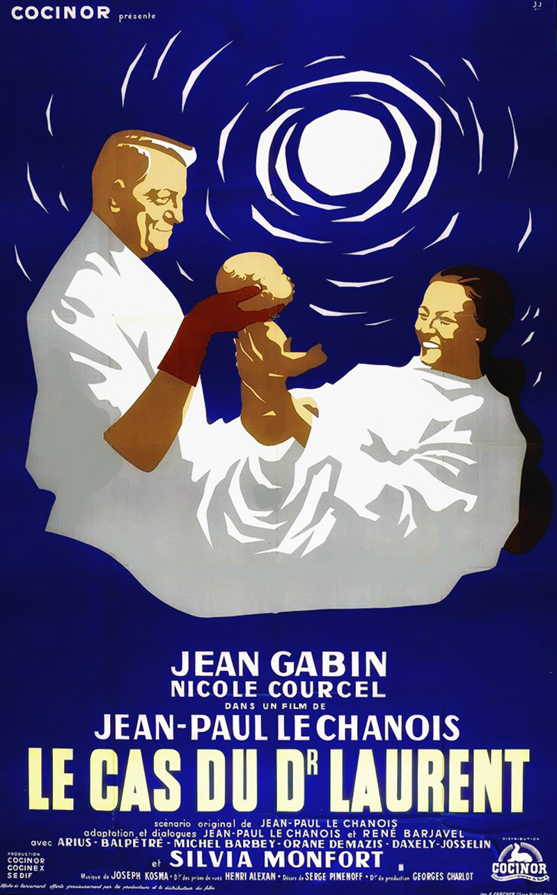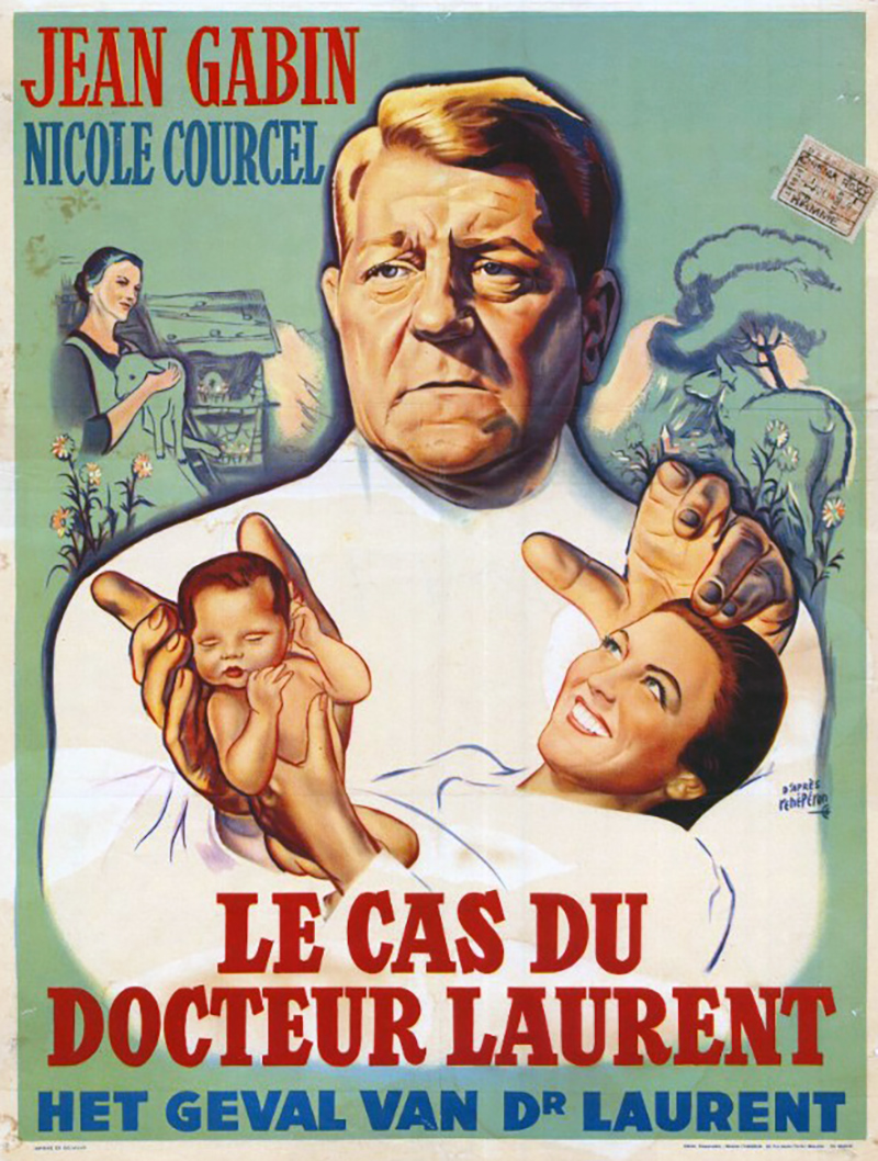 À l’ époque où il tourne Le Cas du docteur Laurent, Jean Gabin est devenu un père de famille comblé par la naissance de trois enfants. Un bonheur qu’il avait longtemps attendu, et qui s’accompagne sur le plan professionnel d’un redémarrage spectaculaire de sa popularité, après les années décevantes de l’après-guerre. Deux raisons qui ont sans doute incité l’acteur à prendre le risque d’un rôle pour le moins atypique dans sa filmographie, et qui fait de lui un véritable porte-drapeau de la modernité. Dans la peau du docteur Laurent, il retrouve ici sa partenaire de La Marie du port, Nicole Courcel : auréolée du succès triomphal de Papa, Maman, la bonne et moi, la jeune femme surprend elle aussi son public en jouant une future mère prête à braver les convenances pour ne pas souffrir inutilement. À ces deux vedettes extrêmement populaires, qui apportent d’emblée au film leur caution morale, vient s’ajouter la présence, dans le rôle de Madame Escalin, d’Orane Demazis, comédienne qui pour les spectateurs évoque encore l’émouvante Fanny de Marcel Pagnol. C’est dire que Jean-Paul Le Chanois a choisi avec soin les « ambassadeurs » chargés de délivrer son message … [Collection Gabin – La vérité sur Bébé Donge – Eric Quéméré (n°19 – 2006)]