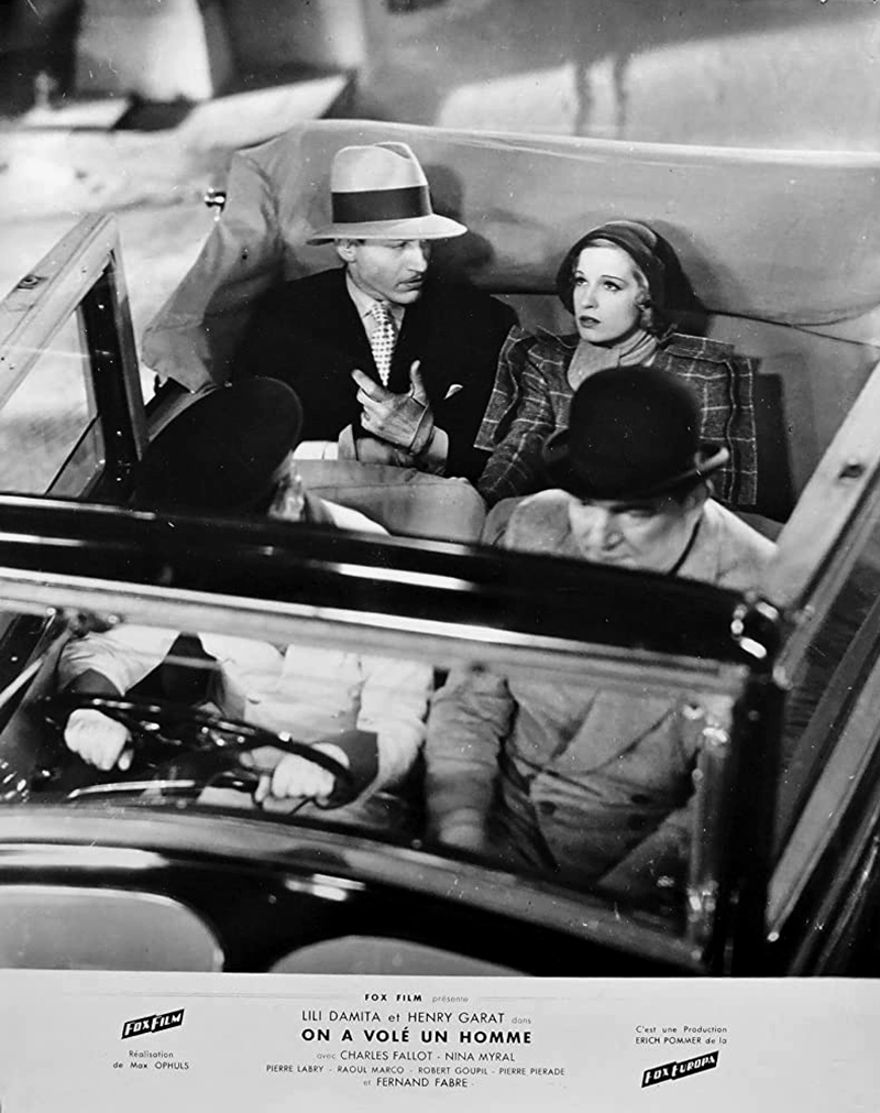 A Paris, où il obtient rapidement la nationalité française, Max Ophüls peut travailler facilement. Il commence par réaliser une version française de Liebelei sous le titre de Une histoire d’amour (1933), travail bâtard qui a consisté à refaire certaines scènes avec deux médiocres interprètes français, le reste du film étant simplement doublé. Le résultat ne soutient malheureusement pas la comparaison avec l’original. Ensuite, Erich Pommer lui confie la réalisation d’un film policier, On a volé un homme (1934), au même moment où le producteur faisait tourner Liliom par Fritz Lang. Ophüls déplorait qu’il n’eût pas fait le contraire, assurant que, dans les deux cas, le résultat eût été bien meilleur.