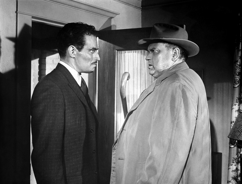 Dans le film noir, le rôle du policier est généralement de traquer le tueur ou d’empêcher le journaliste ou le détective privé de mener sa propre enquête. Cependant, certains films révèlent également la face obscure de la police, comme On Dangerous ground (La Maison dans l’ombre, 1952), dans lequel Robert Ryan incarne un flic ,brutal qui trouve la rédemption lorsqu’une jeune aveugle (Ida Lupino) lui ouvre les yeux. D’autres montrent des policiers si obsédés par leur travail qu’ils vont plus loin que leurs supérieurs ou la loi ne le permettent, comme Nocturne (1946), The Hunted (1948), Naked alibi (Alibi meurtrier, 1954) ou le fameux The Big combo (Association criminelle, 1955). Même un bon flic cherchera vengeance si on le pousse trop loin, comme on le voit dans The Big heat (Règlement de comptes, 1953) et Rogue cop (Sur la trace du crime, 1954), tous deux tirés de romans de William P. McGivern, dans lesquels un policier venge la mort d’un membre de sa famille. Il advient même que, corrompu par le pouvoir qu’ils détiennent, les dépositaires de la loi deviennent eux aussi des hors-la-loi. Dans I Wake up screaming (Qui a tué Vicky Lynn ?, 1941), le héros (Victor Mature) s’évade de prison pour prouver son innocence, mais est poursuivi par un inspecteur peu scrupuleux (Laird Cregar). Dans The Prowler (Le Rôdeur, 1951}, un policier (Van Heflin) séduit une femme au foyer (Evelyn Keyes), puis décide de tuer son mari. Dans Shield for murder (Le Bouclier du crime, 1954), le lieutenant Barney (Edmond O’Brien) abat un bookmaker et fait passer le meurtre pour de la légitime défense. Mais le flic ripou par excellence est Hank Quinlan (Orson Welles) dans Touch of evil (La Soif du mal, 1958). D’autant plus intéressant que Welles le rend plus humain, Quinlan fascine par son ambiguïté morale, thème exploré plus avant dans Coup de torchon (1981) et Bad Lieutenant (1992).