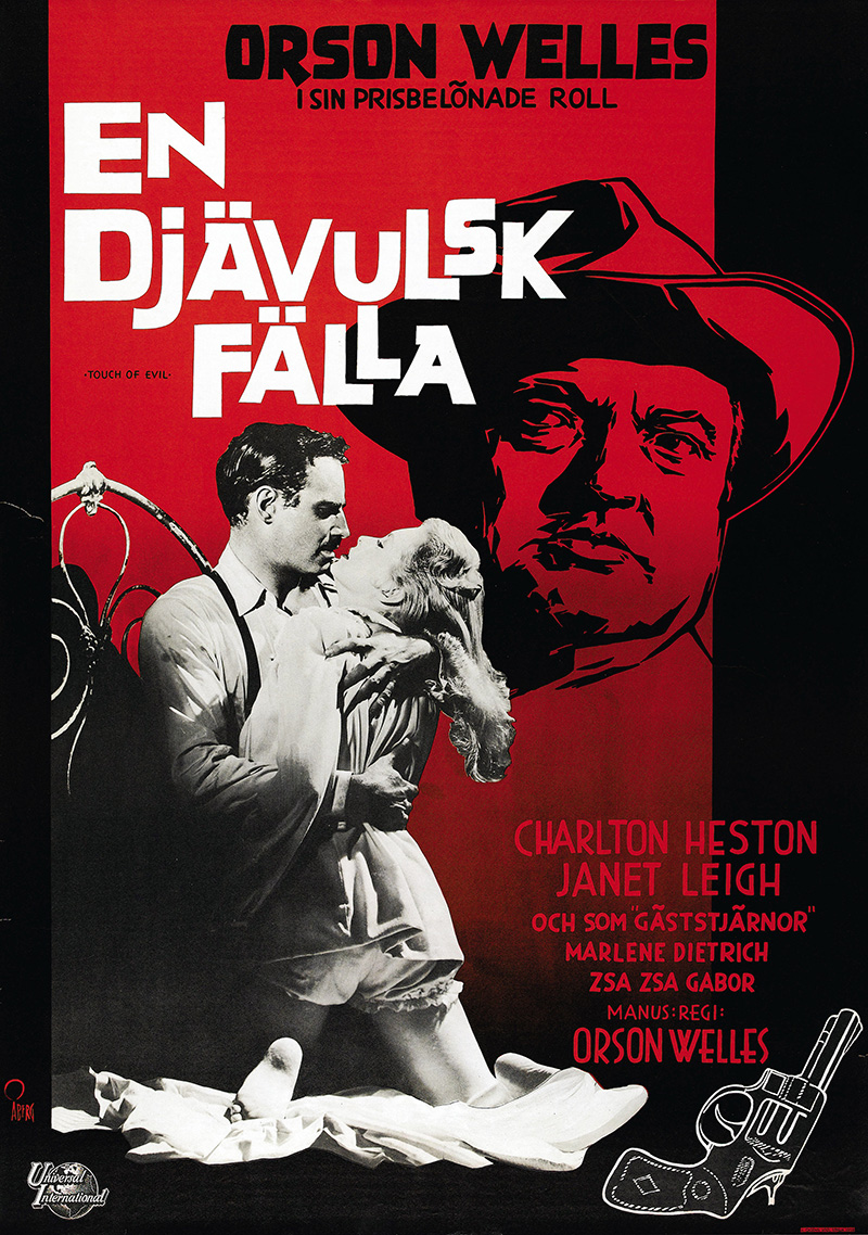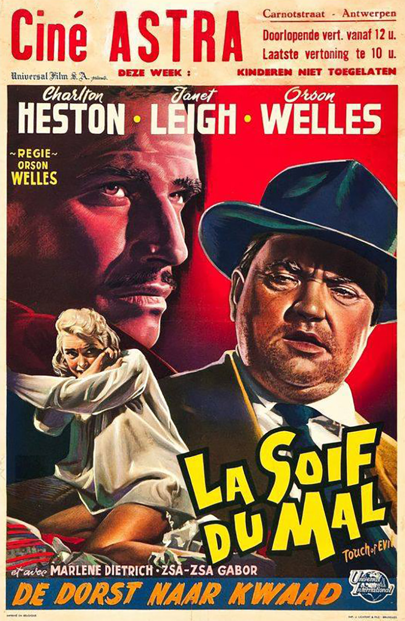 De tous les films de Welles, Touch of evil est sans aucun doute le plus noir, le plus cauchemardesque, encore plus kafkaïen que ne le sera Le Procès. La petite ville de Los Robles, une de ces bourgades frontières à mi-chemin entre les États-Unis et le Mexique, symbolise la corruption et la pourriture, physique et morale. On y assassine à la dynamite une puissance locale et sa compagne, on cherche à y vitrioler un policier et, à quelques kilomètres, le motel où se réfugie Susan est le lieu d’un véritable ballet diabolique où se mêlent la xénophobie, le sexe et la drogue. L’apparition de Mercedes McCambridge et de ses deux compagnes établit d’un coup qu’elle est lesbienne, une « butch » qui avoue à propos de ce qui menace la blonde Janet Leigh : « Le plaisir ne fait que commencer » puis « Laissez-moi rester ! Je veux regarder ! ». Quelques mois après Touch of evil, Janet Leigh s’arrêtera pour son malheur au Bates Motel dans Psychose, d’Alfred Hitchcock, la présence de la même actrice établissant soudain de curieux liens entre ces deux films, renforcés par le fait que le veilleur de nuit halluciné campé par Dennis Weaver peut avoir influencé Hitchcock dans sa manière de diriger Anthony Perkins.