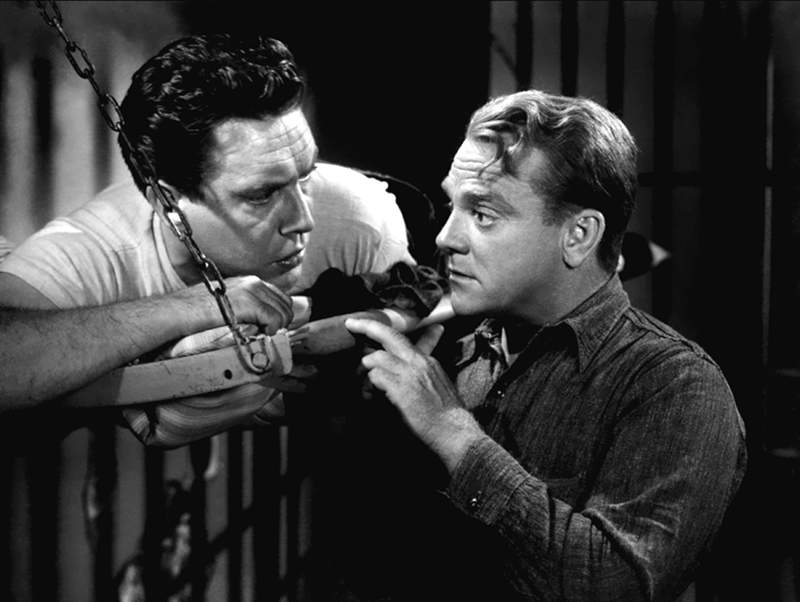 « White Heat idéalise la loi de la jungle et la présente comme une manière de vivre. Il fit une forte impression sur les détenus de la prison, notamment sur les jeunes. Il y a eu de longues discussions après la projection : certains insistaient sur le fait que Cagney est représenté dans le film comme un fou. Mais Cagney est aussi un acteur célèbre. Le public de la prison – et c’est probablement valable pour d’autres publics – associait le personnage fictif à la réputation de Cagney. Les spectateurs le voyaient comme le symbole attractif de la force, se défendant lui-même contre une société cruelle et irrationnelle. »Au moins – a-t-il été dit – il a assez d’estomac pour se lever et se battre. » » John Howard Lawson