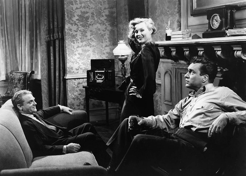 Propulsé jadis au rang d’idole du 7e art avec The Public enemy (L’Ennemi public, 1931), James Cagney, dans le rôle de Cody Jarrett, sera épargné par les histoires habituelles tournant autour de l’ascension et de la chute des hommes. Dans la scène de l’attaque du train postal, avec ses manières rustiques et dignes du Far West, le gangster qu’il interprète est déjà loin de son zénith. Dans un contraste saisissant, les méthodes de la pouce apparaissent simples et efficaces, et sont rendues par Walsh dans un style quasi documentaire. Nous assistons à un face-à-face entre un bandit de la vieille école et des pouvoirs publics dotés d’une technique moderne. Alors que les enquêteurs de police utilisent des postes émetteurs de radio et des téléphones de voiture, Jarrett semble avoir ces appareils en aversion. La seule fois où il se saisit du téléphone, c’est pour l’arracher du mur et le jeter par terre.