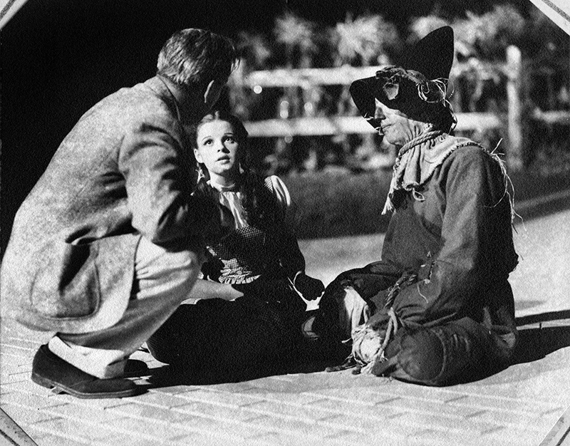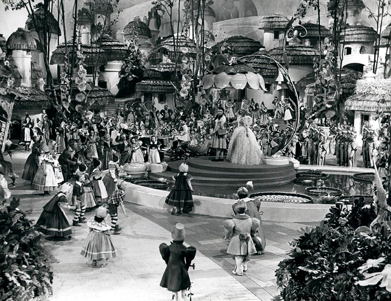 Les fameuses chaussures de Dorothy – du moins l’une des paires ! – sont exposées au Smithsonian, le National Museum of American History, à côté d’une des versions du scénario, celle de Noel Langley, datée du 4 mai 1938. Ce qui n’aurait pu être que la réponse de la Metro-Goldwyn-Mayer aux films produits par la 20th Century-Fox avec Shirley Temple est devenu, par la magie du studio, une œuvre exceptionnelle. Il suffit de comparer The Wizard of Oz à The Blue Bird (L’Oiseau bleu), réalisé en 1940 – donc quelques mois plus tard – par Walter Lang avec Shirley Temple d’après Maurice Maeterlinck, pour en être persuadé.