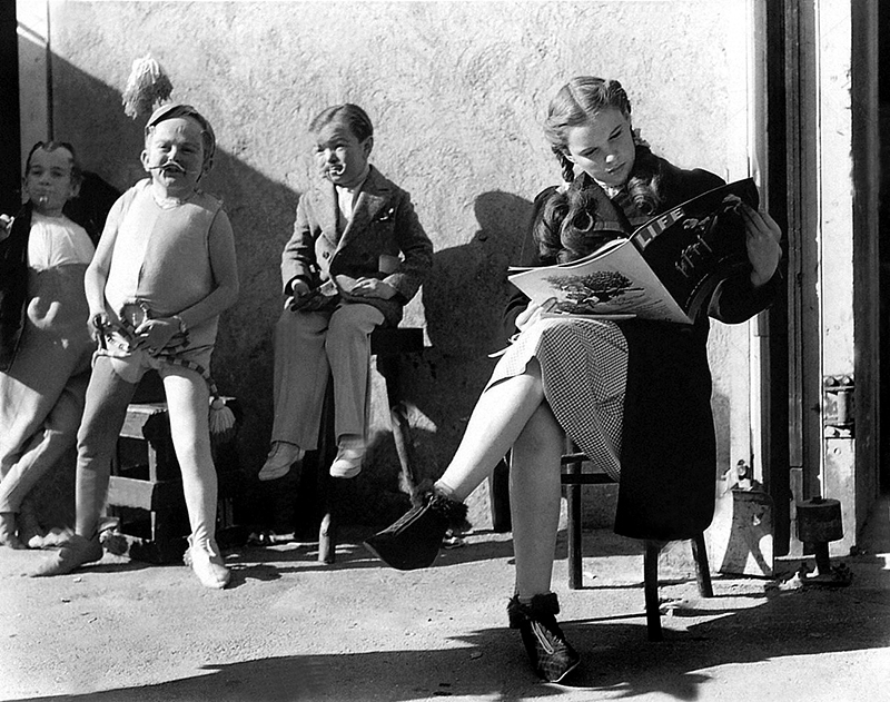 Venus de partout, les nains étaient logés au Culver City Hotel où ils causèrent de multiples scandales. Certains étaient des souteneurs, de très dangereux personnages, toujours prêts à jouer du couteau. Souvent ivres, ils agressèrent les starlettes de la M.G.M. – se glissant sous leurs jupes ! – insultaient ceux qui leur parlaient et se livrèrent à de véritables orgies. Le fait que la majorité étaient des étrangers empêcha par ailleurs Fleming d’enregistrer comme il le souhaitait leurs chansons et l’obligea à les faire doubler. La réunion de 124 nains et de six enfants pour jouer les Munchkins fut un élément de curiosité – une superbe photographie publiée dans « The Munchkin remember » montre plusieurs dizaines de nains en costumes civils traversant ensemble une rue en se rendant au studio pour le tournage du film – et une source de problèmes divers. [La comédie musicale – Patrick Brion – Edition de la La Martinière (1993)]