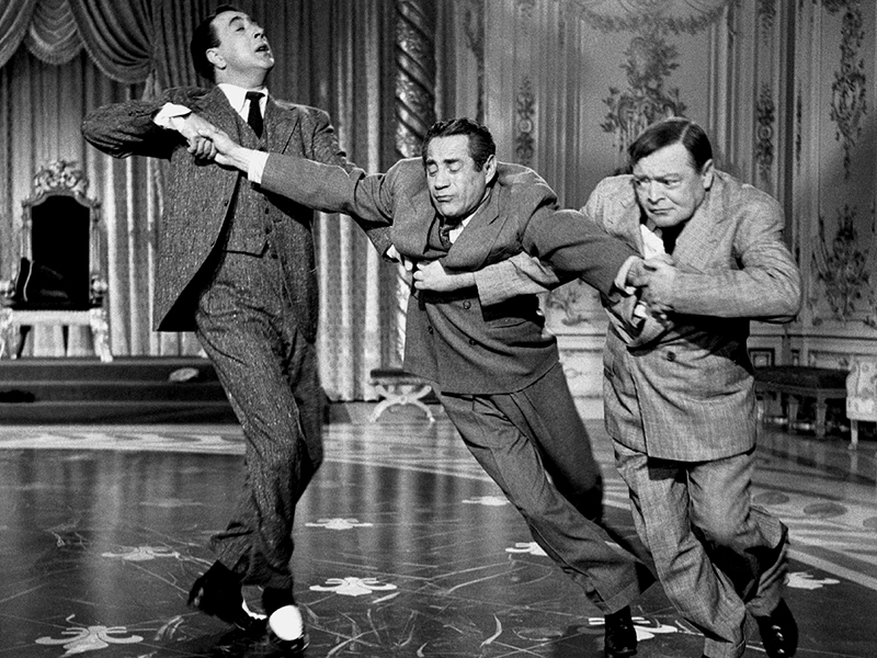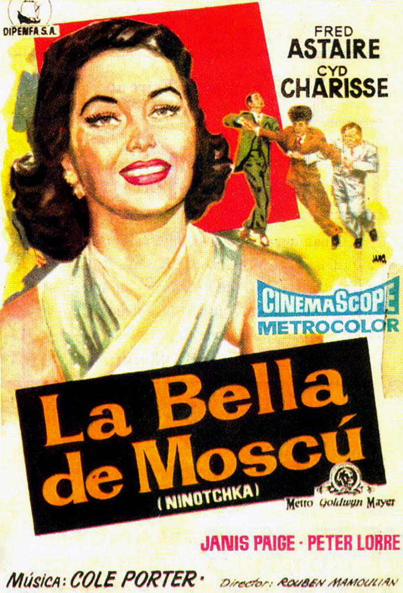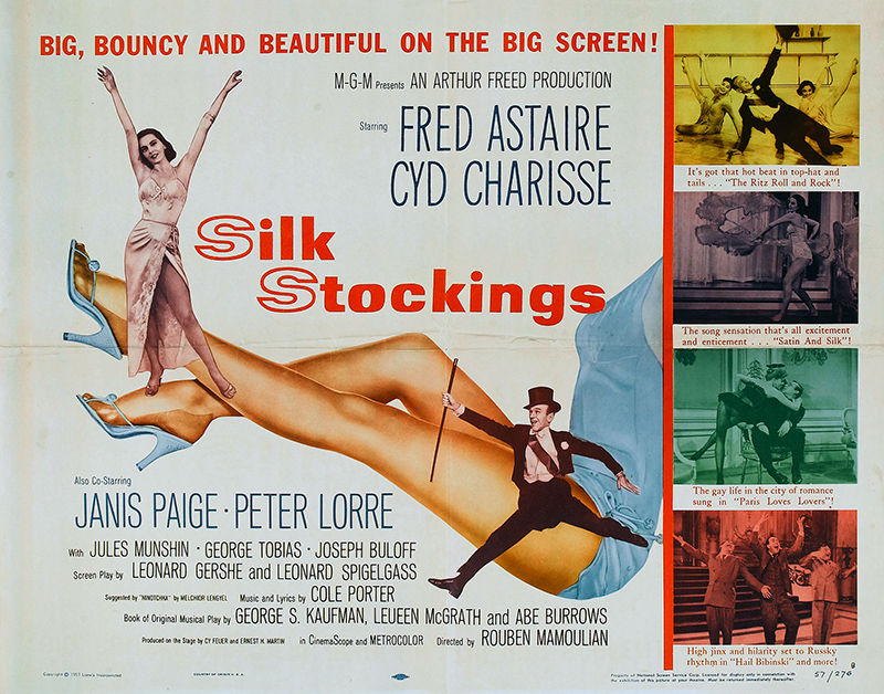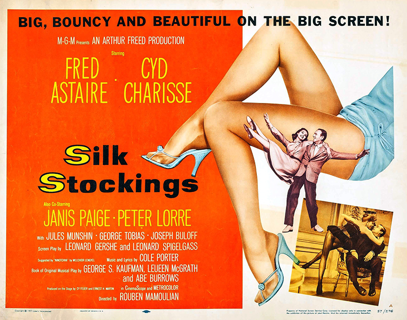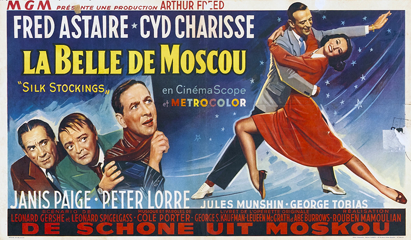 Brillant remake du Ninotchka d’Ernst Lubitsch, avec Greta Garbo, ce film a la grâce des chefs-d’œuvre accouchés dans le doute et la douleur. Fred Astaire croyait être en fin de carrière et craignait qu’on ne ricane devant ses acrobaties légèrement ridées. Cyd Charisse frémissait à l’idée qu’on la compare avec la Divine et travaillait dur pour montrer ses vrais talents d’actrice plutôt que d’exhiber une nouvelle fois ses jambes mythiques… Le réalisateur, Rouben Mamoulian, avait mis dix ans à se remettre du désastre financier de son précédent film et restait intimidé par cette comédie antisoviétique, qui trouvait un écho dans sa vie personnelle. D’origine géorgienne, il avait en effet grandi à Paris avant de partir faire ses études à Moscou. Enfin, les déhanchements d’un certain Elvis menaçaient de plus en plus la pérennité de la comédie musicale version Arthur Freed. Silk Stockings (La Belle de Moscou) traverse ces dangers avec flamboyance, forte de ses répliques spirituelles, de sa sensualité feutrée et de ses superbes numéros musicaux. A noter la participation inattendue et délicieusement caricaturale de Peter Lorre en apparatchik rabelaisien. [Marine Landrot – Télérama]