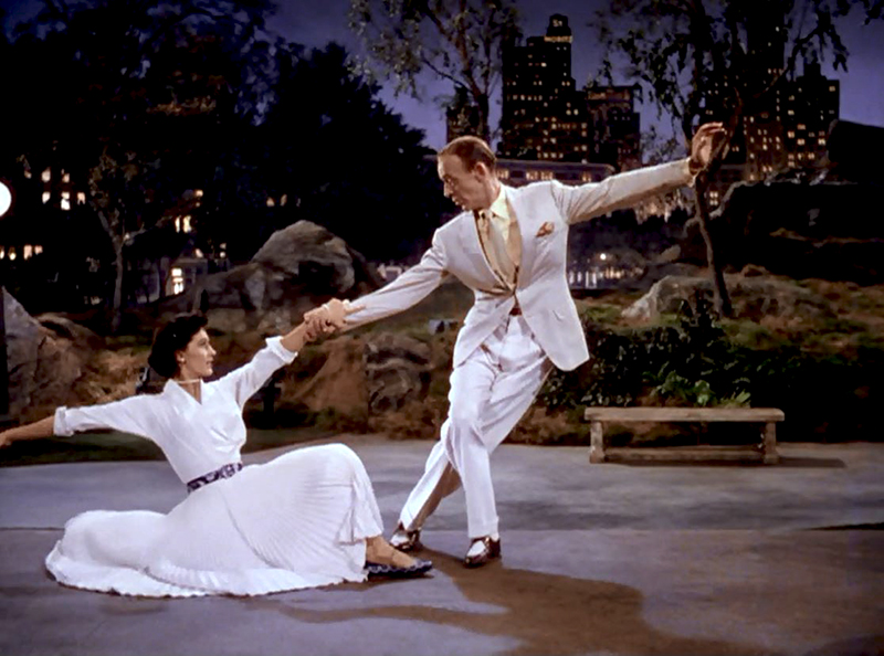 Parmi les magnifiques numéros de The Band Wagon, le plus extraordinaire est certainement Dancing in the Dark, où les deux stars, avant de danser, marchent avec une élégance suprême dans un Central Park de studio, vêtus de blanc et servis par les mouvements d’appareil magistraux de Minnelli et de son chef-opérateur, Harry Jackson. Newsweek écrit à propos de cette séquence : « Tandis que le récit se déroule, l’animosité au sein du couple Charisse-Astaire se dilue au cours d’une promenade à Central Park ; l’atmosphère est redevenue sereine. Ils glissent lentement sur la musique de Dancing in the Dark. La danse continue sur un tempo de fox-trot hésitant. La séquence est auréolée de magie et Charisse est une voluptueuse partenaire pour le grand maître. » De fait, elle parvient à donner à cette scène une intensité sentimentale qui est généralement absente des numéros de Fred Astaire avec Ginger Rogers… [Cyd Charisse, danseuse fatale -Hollywood, la cité des femmes – Antoine Sire (Ed. Institut Lumière / Actes Sud, 2016)]