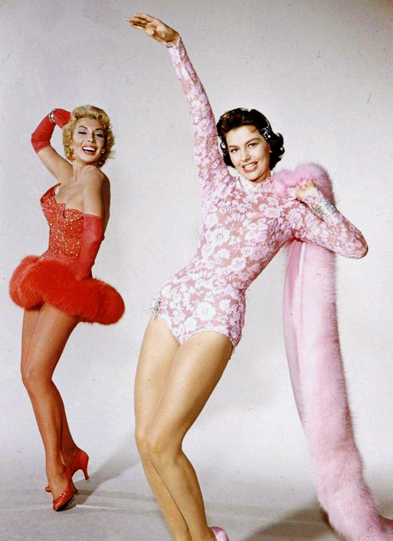 Elle tourne à nouveau pour Gene Kelly et Stanley Donen dans It’s Always Fair Weather (Beau fixe sur New York, 1955), une comédie musicale dont le scénario un peu désenchanté marque l’essoufflement du genre. Mais les numéros sont éblouissants, en particulier « Baby You Knock Me Out », où Cyd Charisse danse avec des boxeurs sur un ring, est l’une de ses plus belles réussites ! Son ensemble vert sapin dessiné par Helen Rose, styliste attitrée de la MGM qui l’aura accompagnée dans tous ses films de la Freed Unit, est une magnifique réussite. En 1956, elle est aux côtés de Dan Dailey la vedette de Meet Me in Las Vegas (Viva Las Vegas), réalisé par Roy Rowland et brillamment chorégraphié par Hermes Pan et Eugene Loring. Elle incarne une danseuse qui fait gagner un fermier (Dailey) à la roulette chaque fois qu’il lui tient la main ! L’intrigue est très mince mais les scènes de casino sont propices à des numéros de danse somptueux. [Cyd Charisse, danseuse fatale -Hollywood, la cité des femmes – Antoine Sire (Ed. Institut Lumière / Actes Sud, 2016)]