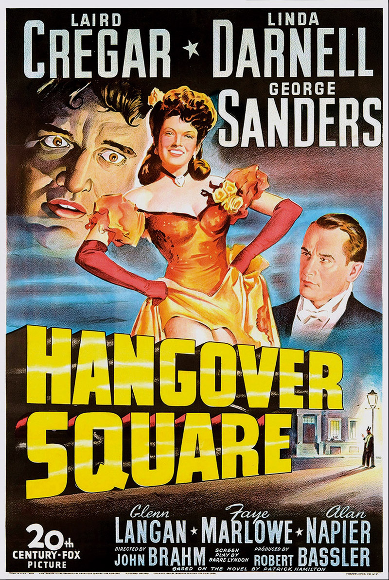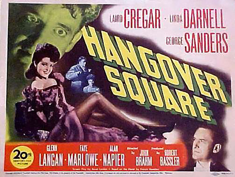 Sur un sujet proche, Hangover Square (1944), de John Brahm, réussit un autre type d’osmose entre gothique et film noir. Tiré d’un roman de Patrick Hamilton, l’histoire se situe dans le Londres du XIXe siècle. Un compositeur schizophrène subit des crises de folie criminelle dont il perd ensuite le souvenir. D’entrée, nous savons qu’il est un assassin et sommes invités à suivre son double chemin de croix : celui de sa dualité incontrôlable qui le conduit à tuer et celui de son écartèlement névrotique entre sa vocation musicale et sa passion contrariée pour une chanteuse arriviste qui le contraint à prostituer son art pour elle. (…) Pétri d’effets visuels aux contrastes expressifs, ce film est une symphonie de l’inconscient malheureux. Il est entièrement bâti sur la composition d’un concerto (écrit par Bernard Herrmann), ce qui lui permet d’explorer l’hypersensibilité d’un l’artiste psychopathe et d’insister sur ses échos dans son inspiration créatrice. Sa force tient aussi d’un permanent climat onirique où tout se noue et se dénoue devant le spectateur réduit à l’état de témoin effaré. [Le film Noir (Vrais et faux cauchemars) – Noël Simsolo – Cahiers du Cinéma Essais – (2005)]
