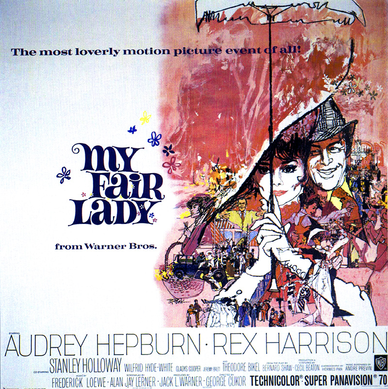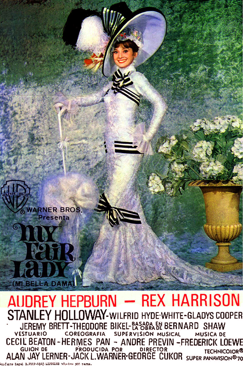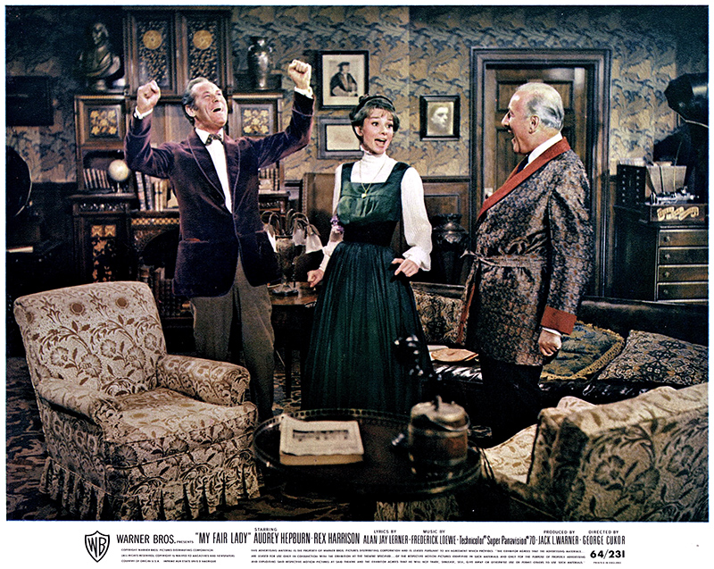 Cecil Beaton, révèle fièrement le programme du film, a dessiné 1 086 costumes, dont le prix d’exécution a dépassé 500 000 dollars. Les décors ont coûté plus d’un million de dollars et ont occupé certains jours la quasi-totalité des vingt-six plateaux des studios de la Warner. Grâce à la perfection de ses trois interprètes principaux, Rex Harrison, Audrey Hepburn et Wilfrid Hyde White, Cukor parvient que ce soit dans « The Rain in Spain », chanté avec bonheur par les trois lorsque Higgins prend conscience de la métamorphose d’Eliza, ou dans « Wouldn’t it be loverly ? », à échapper au poids souvent exagéré de cette trop parfaite reconstitution d’époque pour laquelle les tapis d’Orient de la demeure de Higgins ont été reteints pour parfaire l’harmonie des couleurs. [La comédie musicale – Patrick Brion – Edition de la La Martinière (1993)]