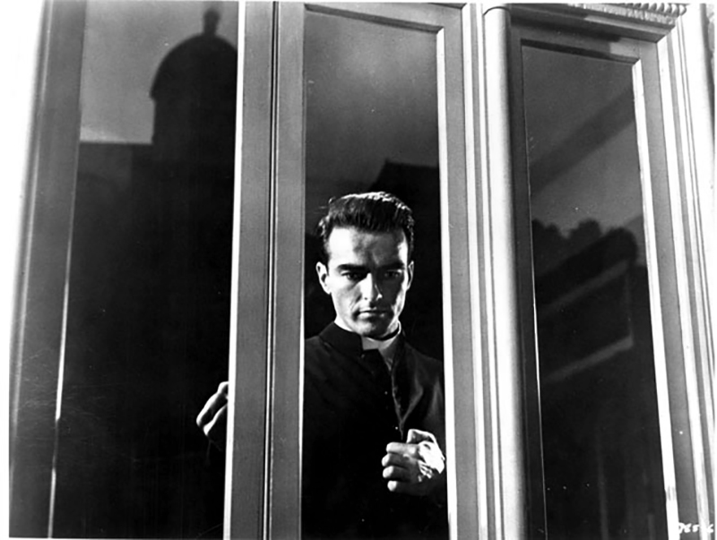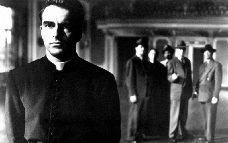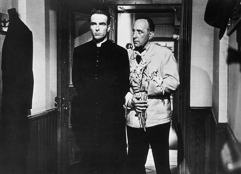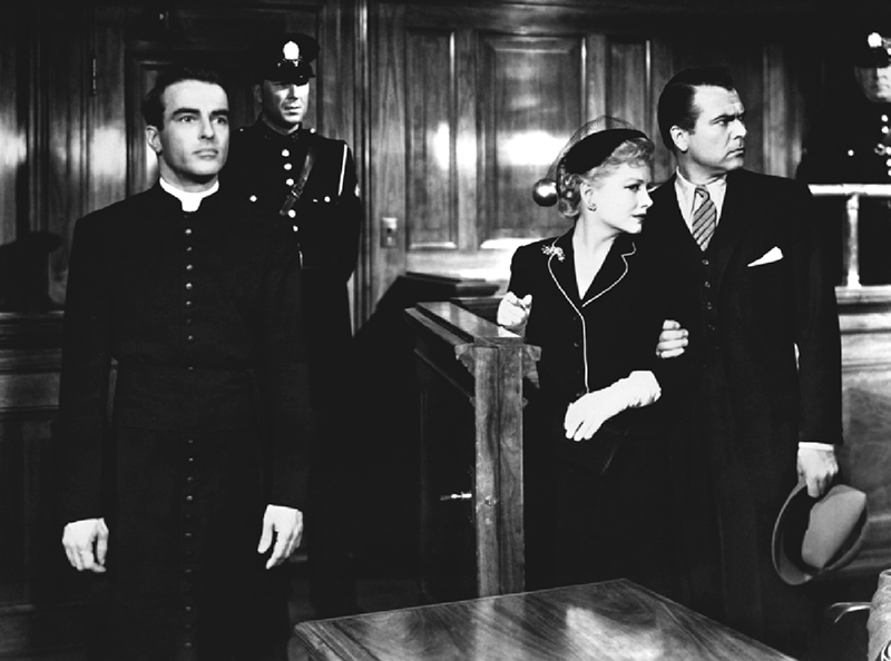 Travailler avec Montgomery Clift présenta un problème d’un autre ordre. Clift faisait partie des premiers acteurs formés à une école d’art dramatique promise à un bel avenir : l’Actors Studio. Selon la méthode de travail de cette école, l’acteur prit soin de s’immerger entièrement dans la peau de son personnage, dans sa soutane pourrait-on dire. Il passa notamment plusieurs jours à étudier la vie d’un prêtre, comme le rapporte Bruno Villien : « Clift s’était sérieusement préparé à son rôle. Il avait passé une semaine dans un monastère près de Québec, auprès d’un jeune moine qu’il connaissait. Le frère lui apprit à dire le rosaire et à faire les génuflexions, il enseigna au comédien la messe en latin. Clift parla beaucoup avec ses amis et les autres moines, observant la manière dont la soutane modifie leur façon de marcher. » De son étude sur le terrain, l’acteur put conclure que « les prêtres ont une démarche particulière parce qu’ils portent une soutane. Ils en repoussent le tissu devant eux avec la main en marchant. » De plus, sur les lieux de tournage, Clift ne se séparait jamais de sa répétitrice personnelle, Mira Restova, sollicitée pour chaque clignement d’œil… Tout cela agaça un tantinet Hitchcock qui, décidément, n’appréciait guère les méthodes de l’Actors Studio, comme il put s’en convaincre, des années plus tard, lors du tournage de Torn Curtain (Le Rideau déchiré), en dirigeant Paul Newman. La qualité de la prestation de Montgomery Clift n’en fut pas moins exceptionnelle. Le réalisateur savait faire le partage entre son travail (réaliser un film) et les aléas de ses rapports avec les acteurs.