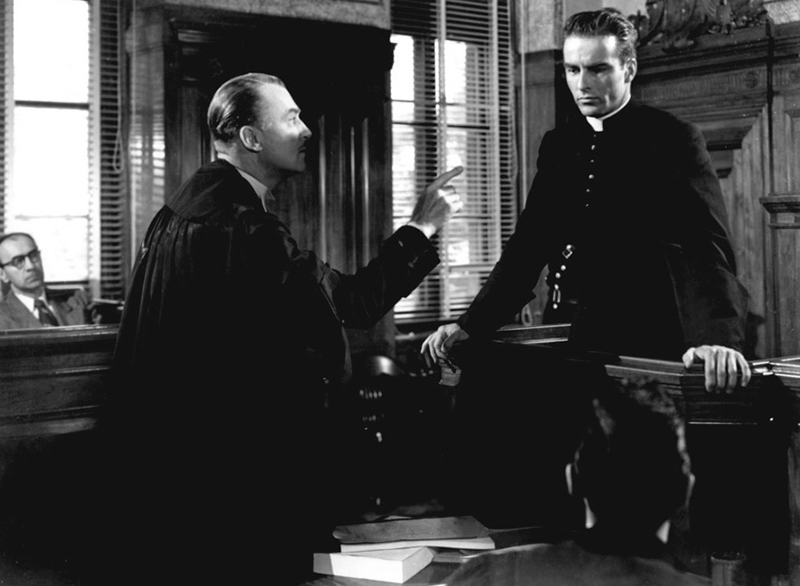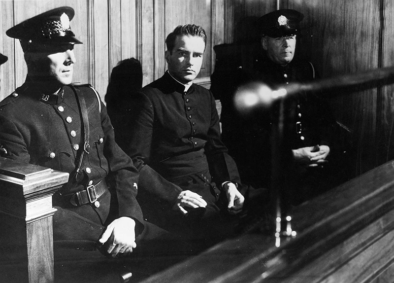 Le procès – Le procès du père Logan s’ouvre sous l’œil attentif des jurés. Tous les témoignages semblent accuser le prêtre : Keller a caché la soutane tachée de sang dans une malle lui appartenant et le procureur transforme les paroles de Ruth, et son témoignage sur sa relation avec Logan, en autant de charges contre l’accusé. Logan, fidèle au secret de la confession, assiste, impuissant, aux manipulations de Keller et aux charges de l’accusation. Il se contente de dire la vérité, sans pouvoir évoquer le témoignage qu’il a recueilli en confession de Keller le soir du crime.