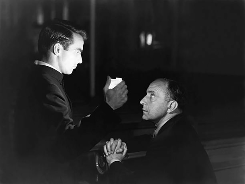 Keller en confession – Otto confesse au père Logan avoir tué l’avocat Vilette, en tentant de lui voler de l’argent. Il avoue aussi son meurtre à sa femme, Alma (Dolly Haas) en lui faisant remarquer que Logan ne peut pas dénoncer un crime avoué lors d’une confession. Le lendemain, Keller se rend chez Vilette, feignant d’ignorer sa mort. Mal à l’aise, Alma annonce que son mari est chez M. Vilette, comme tous les mercredis.