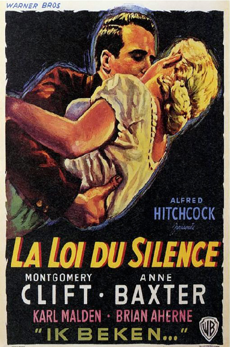 François Truffaut : Je crois que vous n’êtes pas très content de I Confess (la Loi du silence), dont le scénario est cousin de celui de Strangers on a Train. Presque tous vos films racontent l’histoire d’un échange de meurtres. Il y a généralement sur l’écran celui qui a commis le crime et celui qui aurait pu le commettre. Je sais que vous avez été très étonné lorsque les journalistes français vous ont fait découvrir cela en 1955 et je crois que votre étonnement était sincère, mais pourtant il est indiscutable que presque tous vos films racontent la même histoire. Il est troublant que ce même thème soit illustré dans I Confess à travers l’adaptation d’une mauvaise pièce française de 1902 dont on se demande même comment elle est venue jusqu’à vous : «Nos Deux Consciences» par Paul Anthelme.