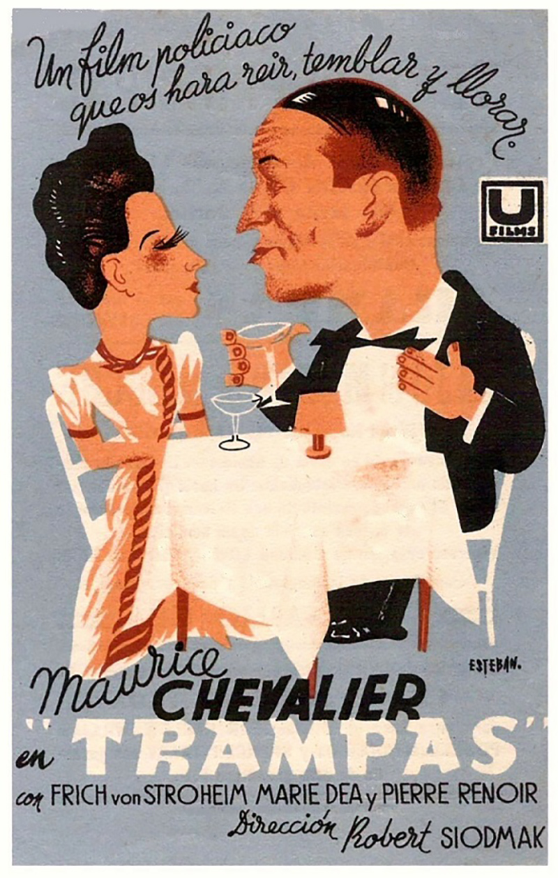 La guerre est à la porte : Quand sort Frères corses, Robert Siodmak est plongé dans la réalisation de ce qui sera son plus grand succès public en France, Pièges. Ce film marque les débuts de Maurice Chevalier dans le registre dramatique : de retour dans les studios cinématographiques après deux ans d’absence, « Momo » a décidé d’abandonner son canotier et le vaudeville du Casino de Paris pour un rôle sérieux et exigeant : celui d’un directeur d’une boîte de nuit accusé à tort de meurtre (ce qui lui permet quand même d’interpréter deux chansons célèbres : « Elle pleurait comme une Madeleine » et « Mon amour »).